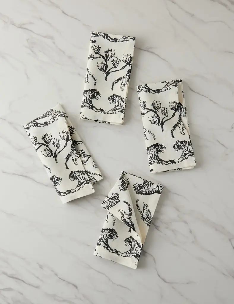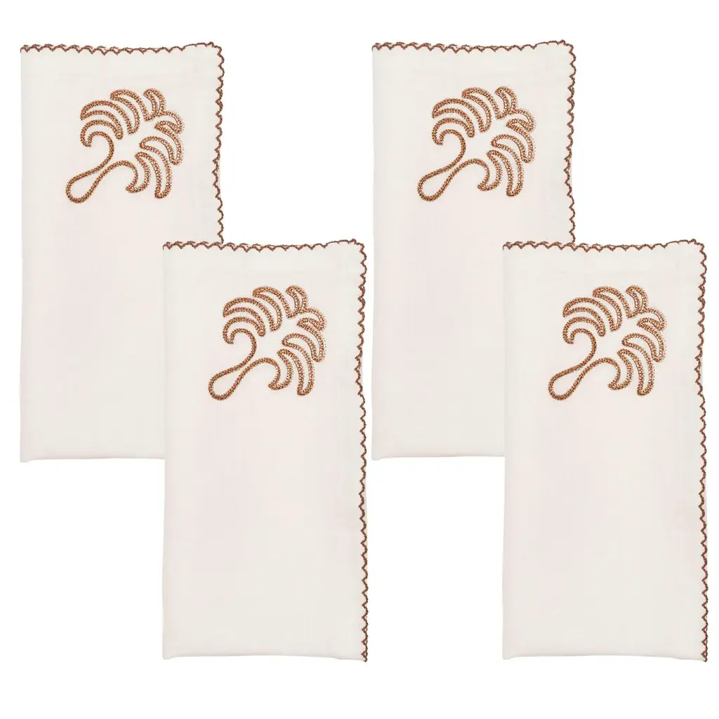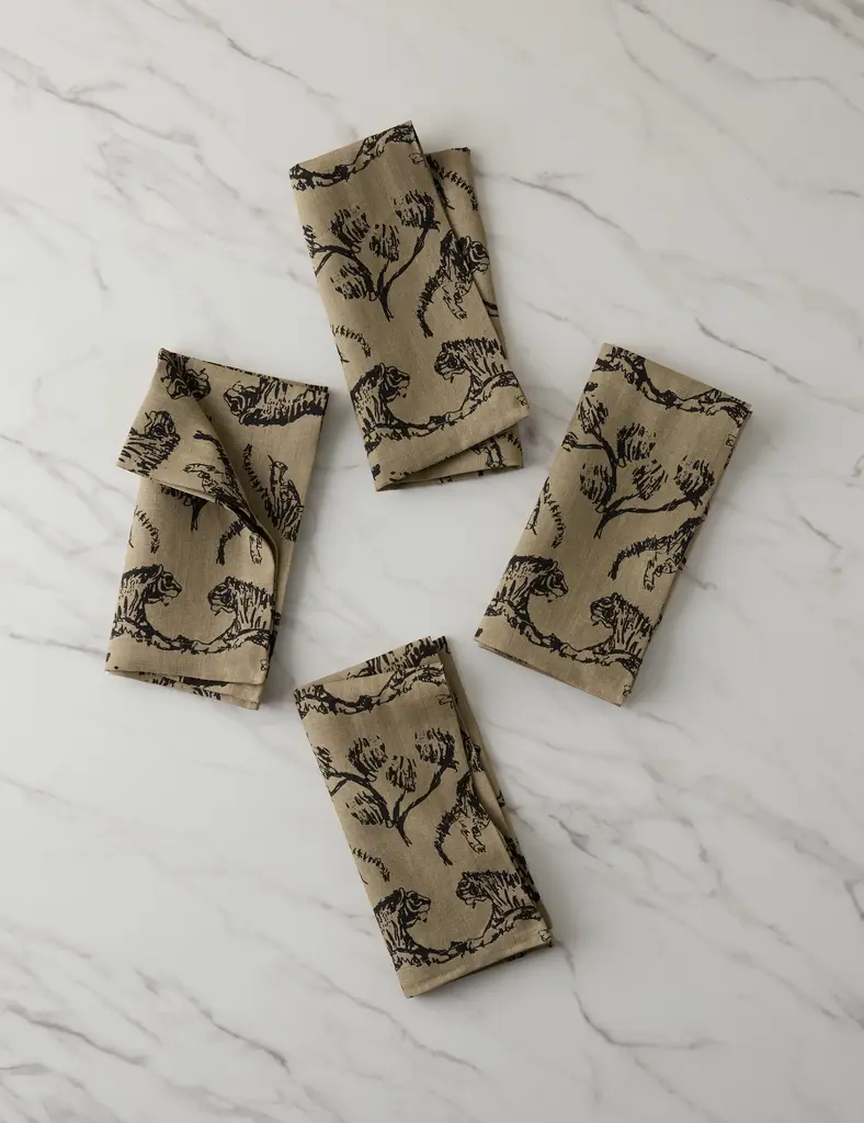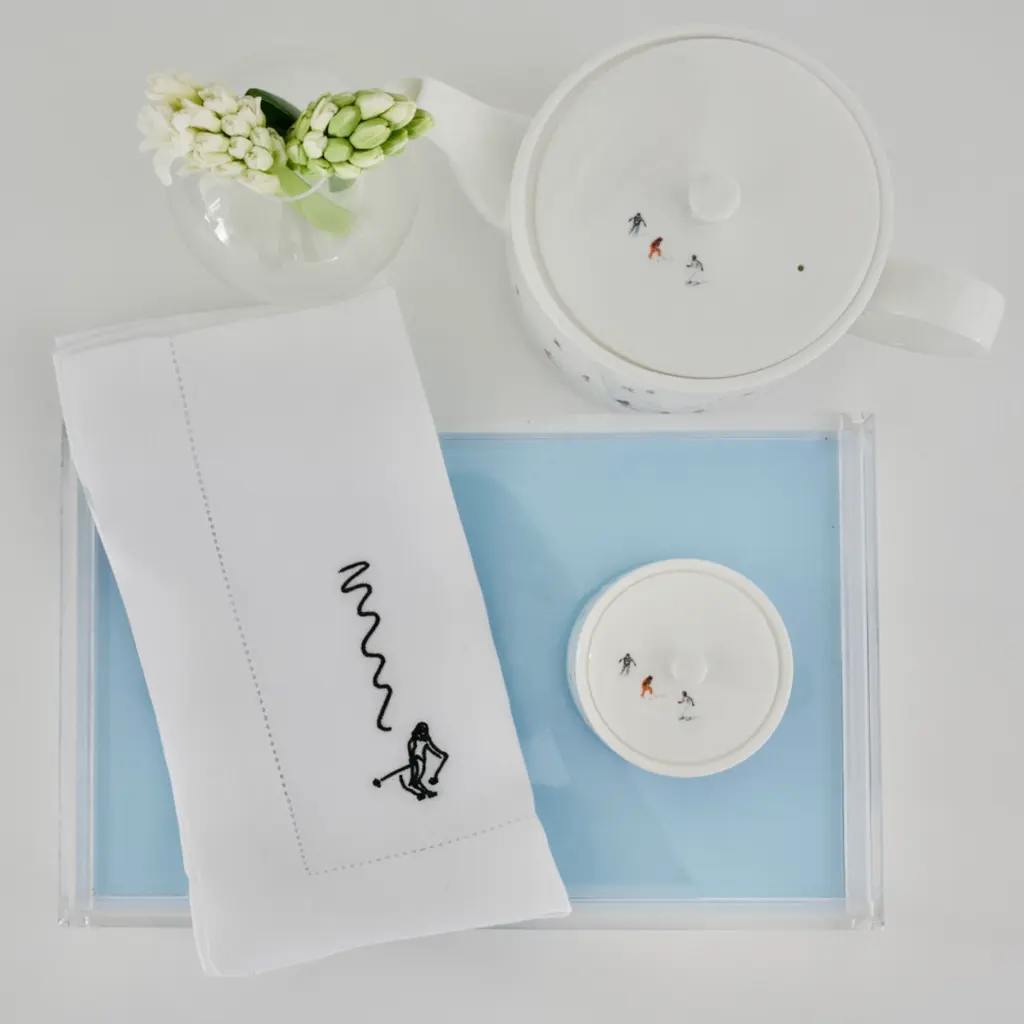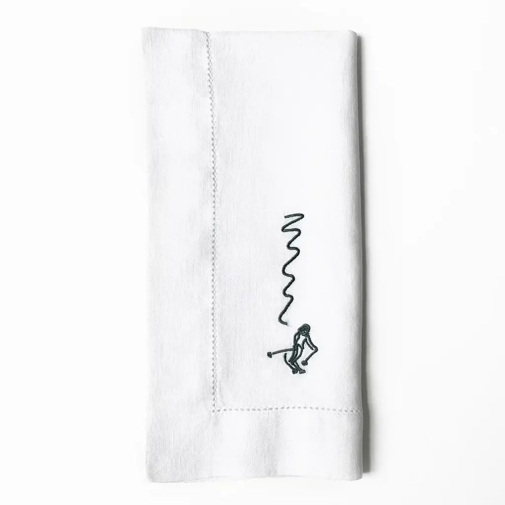Skiers Embroidered Napkin, Set of 4, in Dark Green