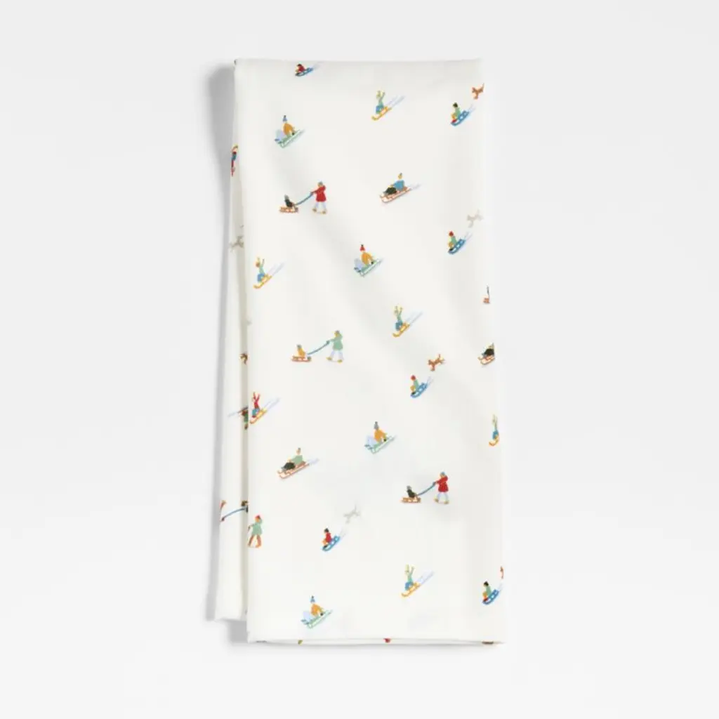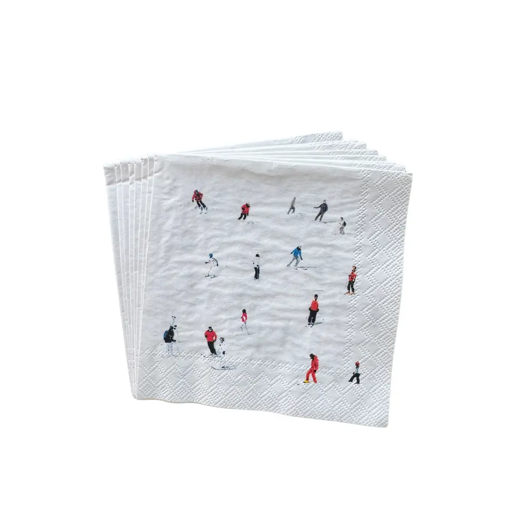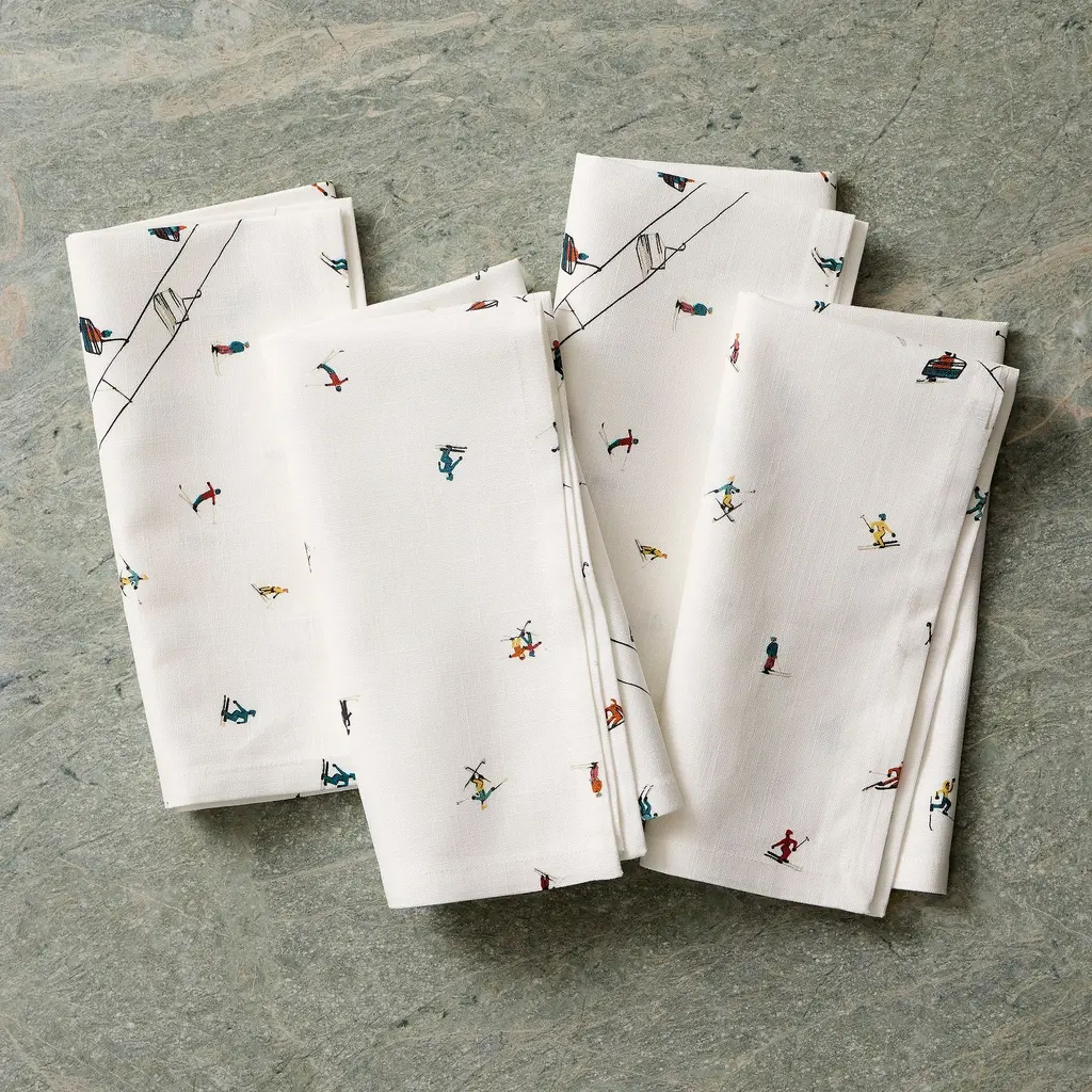 Set of four printed linen napkins with imagery from Dede's Crowded Slopes photograph. Perfect to pair with Skiers China or your own favorite tableware settings. 60% linen40% cotton