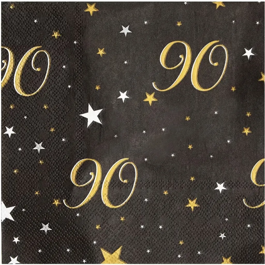 Sparkle And Bash 100 Pack 90th Birthday Paper Luncheon Napkins For 90 Years Celebration, Anniversary Party, 6.5"