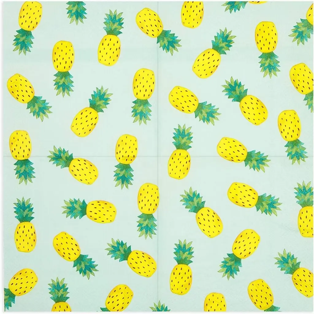 Elevate your dining and dessert tables with this napkin set that includes 100 pineapple cocktail napkins. The decorative yellow pineapples will perfectly complement your decor for an upcoming birthday party, baby shower, summer bash, and family gathering. The sturdy wooden pulp paper construction ensures accidental spills and messes are cleaned with ease. Spend more time celebrating and less time cleaning up, disposal is a hassle-free task with these party napkins! Sparkle and Bash is your source for spectacular, high-quality party and event supplies. We carry exactly what you need to create a visual statement to elevate your party space while keeping things affordable and easy.