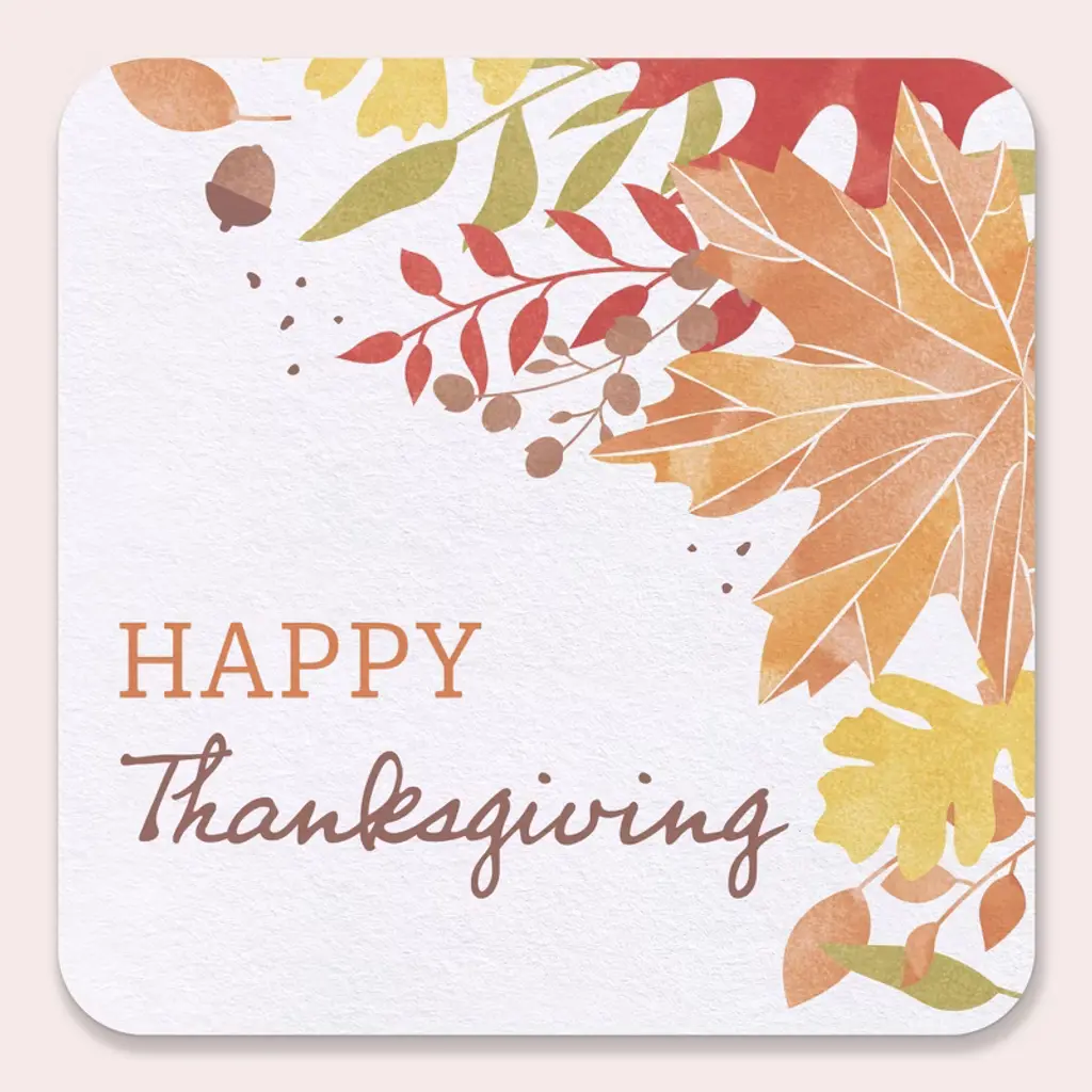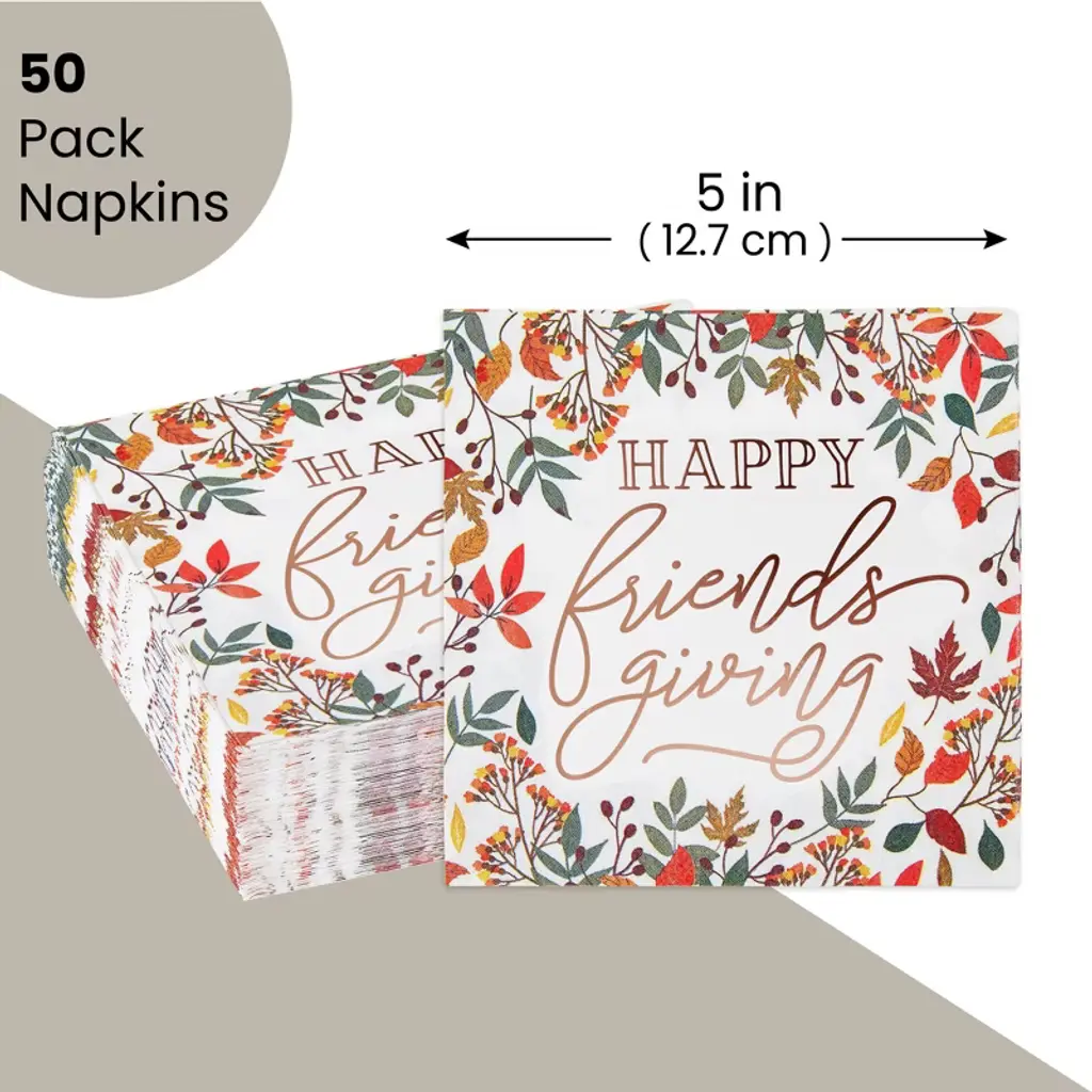 Sparkle And Bash 50 Pack Friendsgiving Napkins, 5X5 Inch Cocktail Napkins With Fall Leaves And Rose Gold Foil For Thanksgiving Party