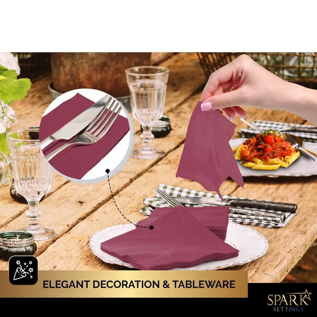 Sparksettings Burgundy Lunch Napkins, 7” X 7” 2 Ply Paper Napkins, Pack Of 50