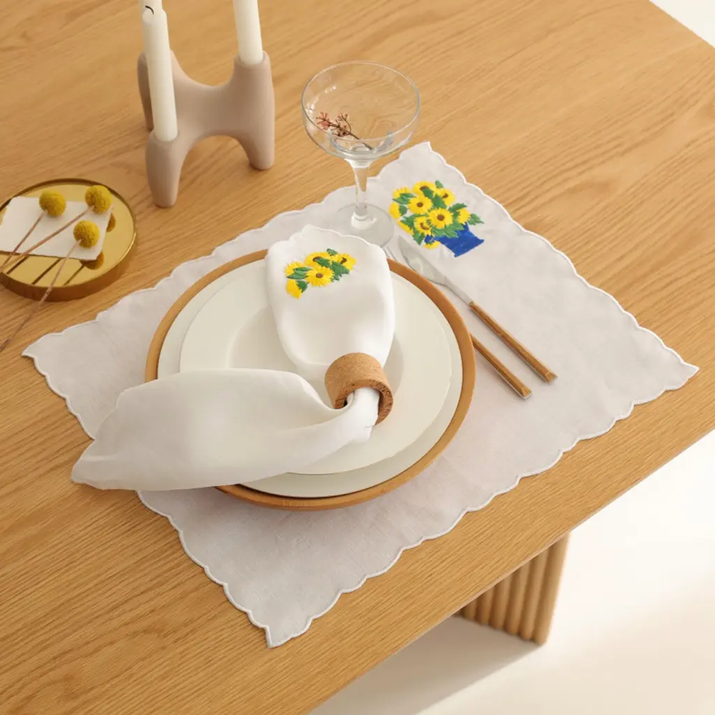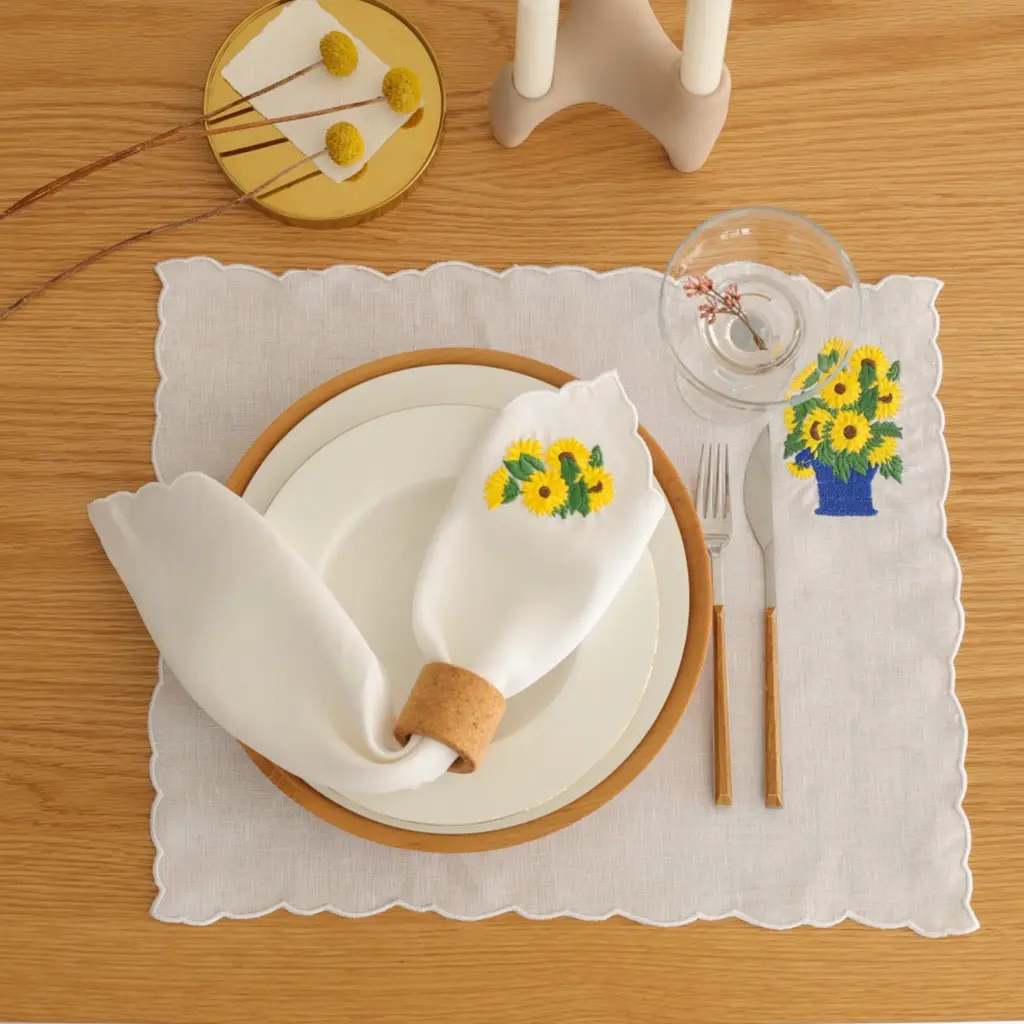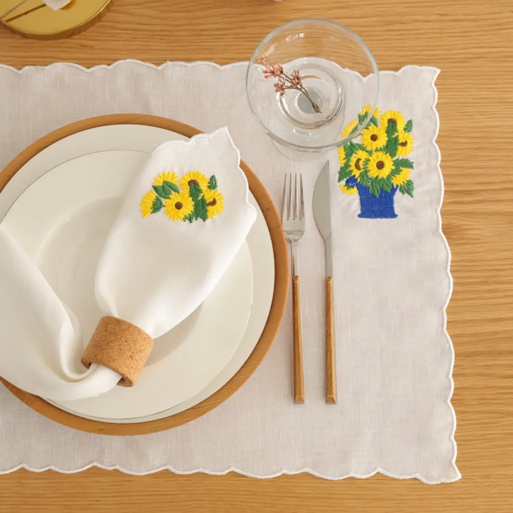 Set of 2KM Home Collection's four seasons-themed napkins bring any season to your table.Material: 100% Turkish linenMeasurements: 40 x 40 cmYou can match it with a Sunflower Embroidery Linen Placemat Set
