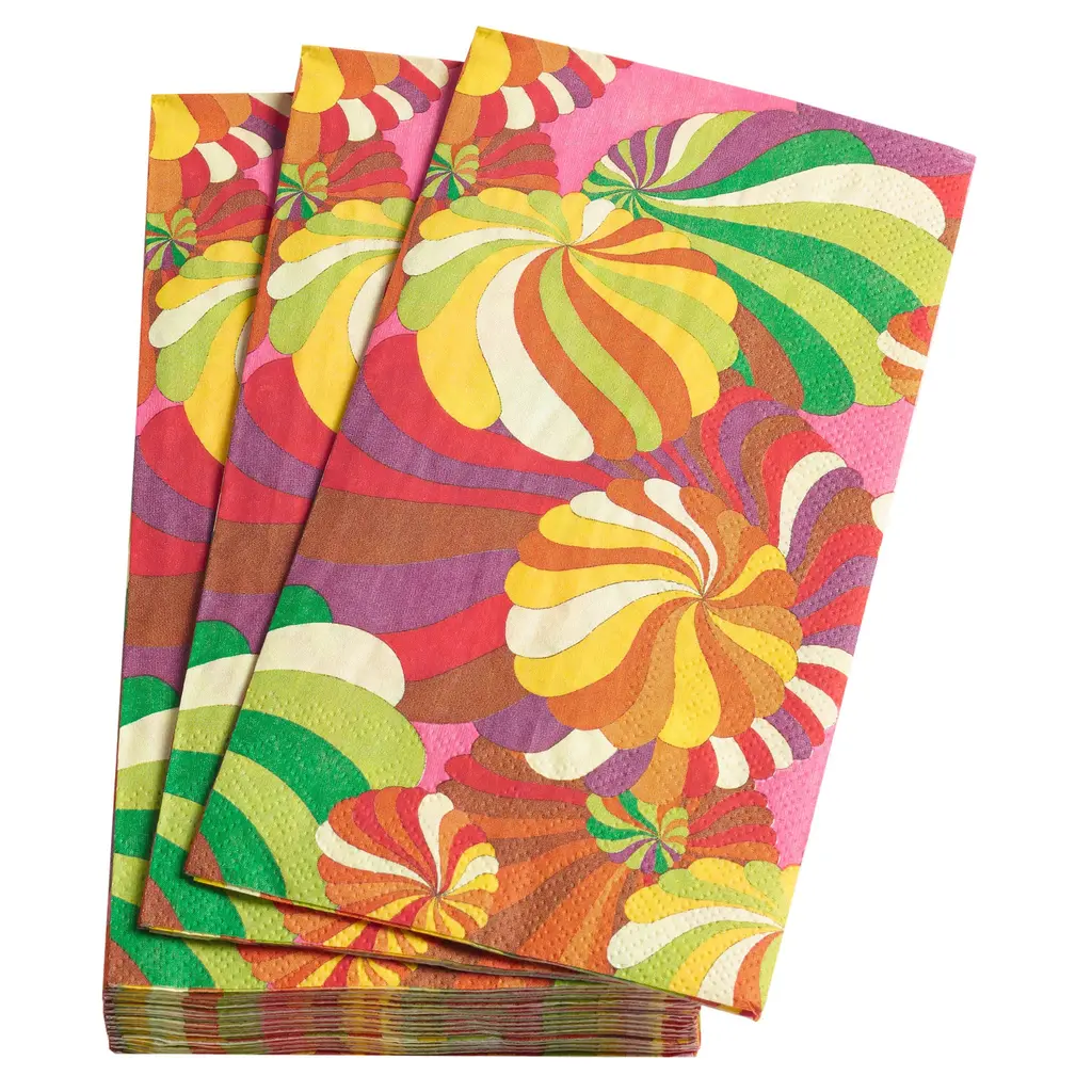 Supercharge your next "Throwback" party with our exclusive psychedelic print. These eco-friendly, single-use paper napkins bring style and convenience to your gatherings. In two sizes: cocktail napkins for drinks and small handheld bites, and guest towels for your powder room. Manufactured in Germany using environmentally-conscious raw materials, ensuring they are both biodegradable and compostable.