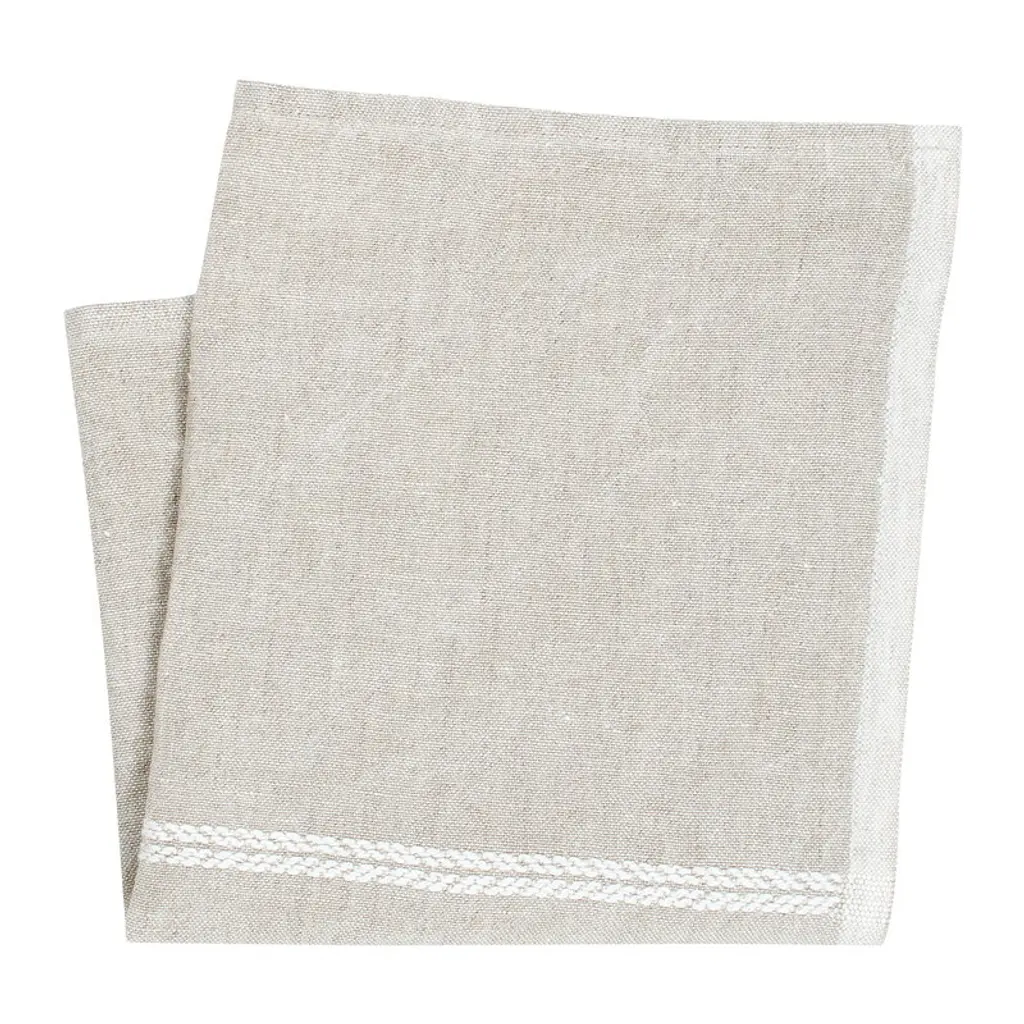 Made of 100% linen, these napkins are detailed with an intricate, open-weave border.