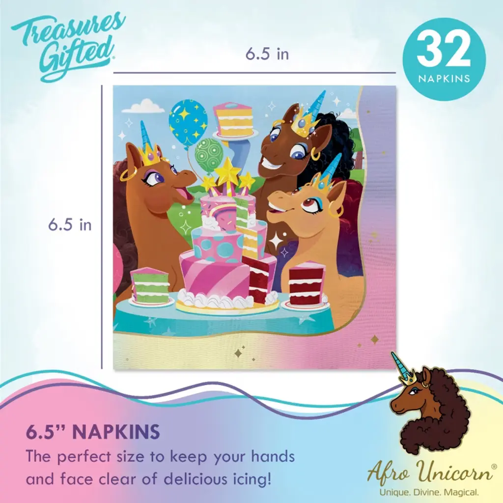 Treasures Gifted Afro Unicorn Birthday Party Supplies - Tableware Starter Set For 24 Guests - Plates & Napkins