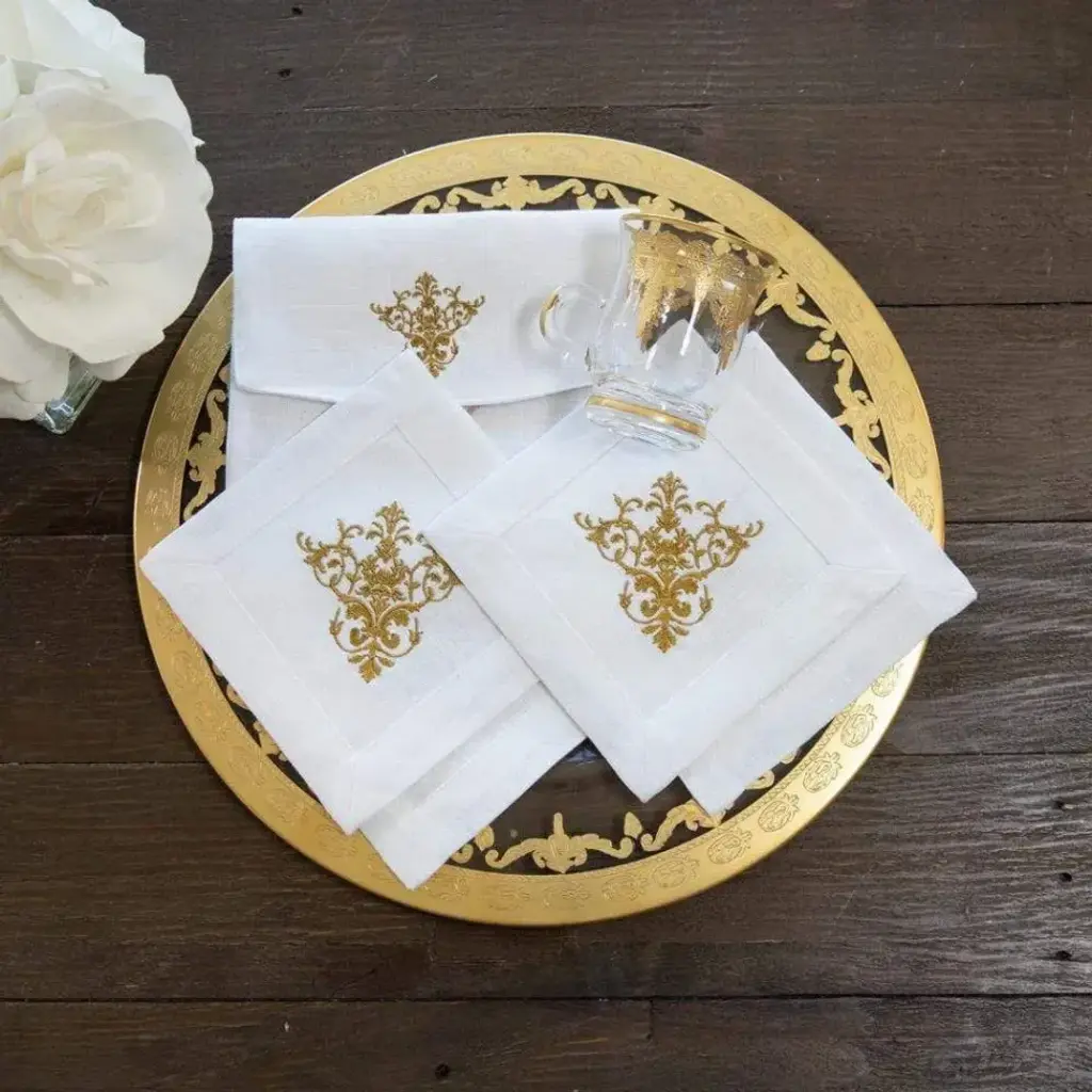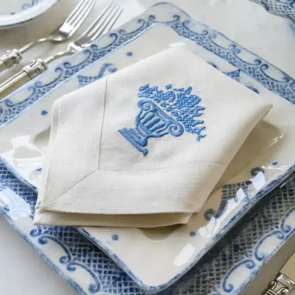 Add timeless elegance to your table with this beautiful 100% European linen napkin with our Victorian pattern. Embroidery colors are designed to complement our favorite tabletop collections, this napkin adds beauty to any part of your home.