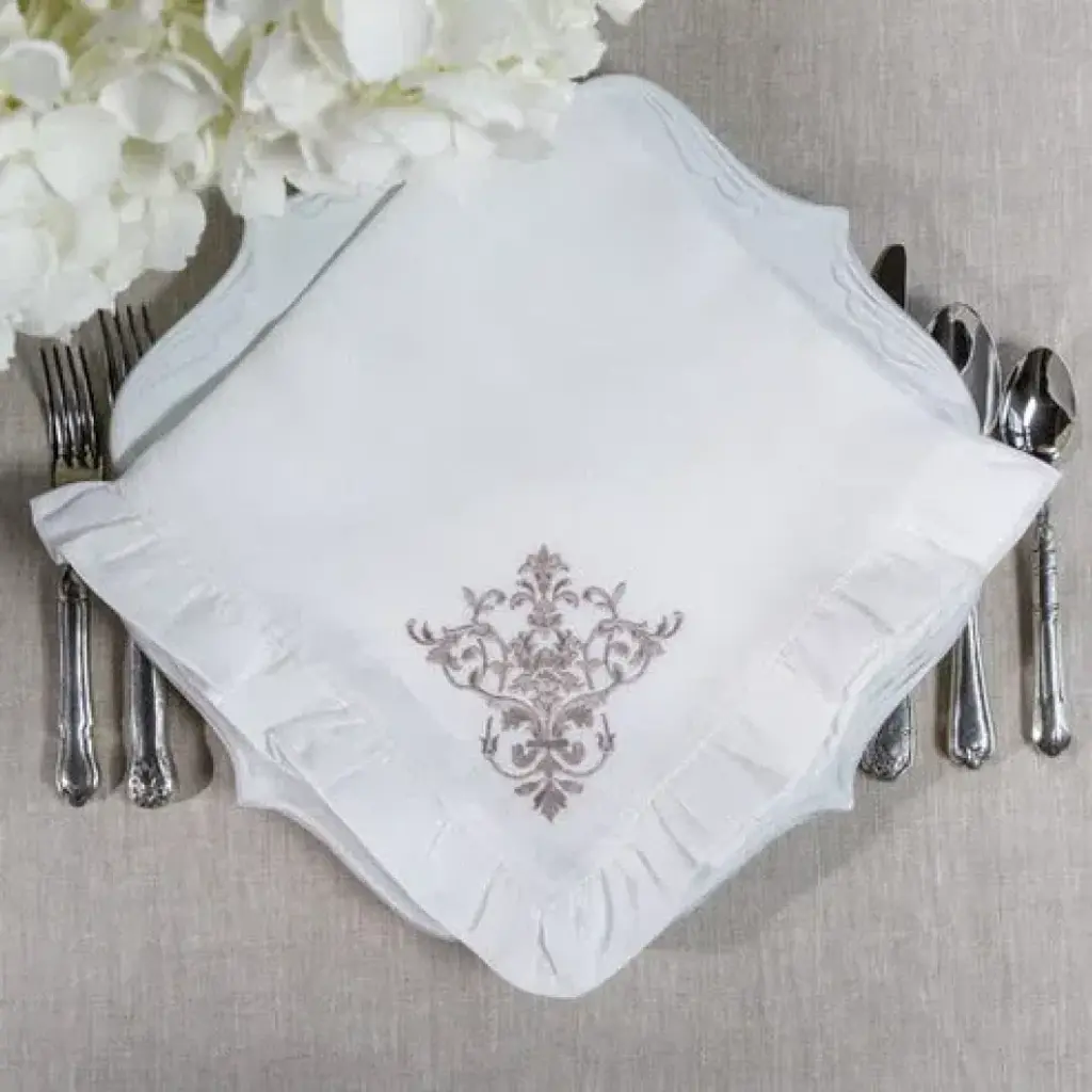 Victorian White (Taupe) Ruffle Large Napkin
