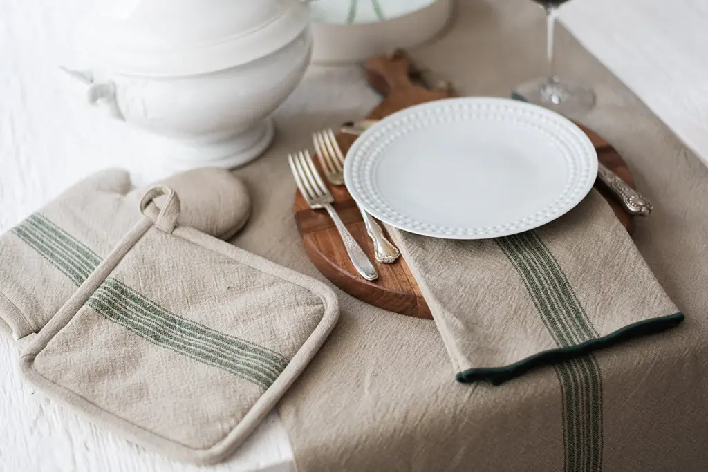 A seamless fusion of heritage and modernity, the French Bistro Collection is designed for those with a discerning eye for both style and substance. Crafted from 100% premium cotton, this napkin set is luxuriously soft yet durable for everyday use. The signature striped motif - an homage to traditional Provençal textiles -lends a refined yet understated vibrancy, elevating any kitchen or tablescape with a touch of je ne sais quoi.