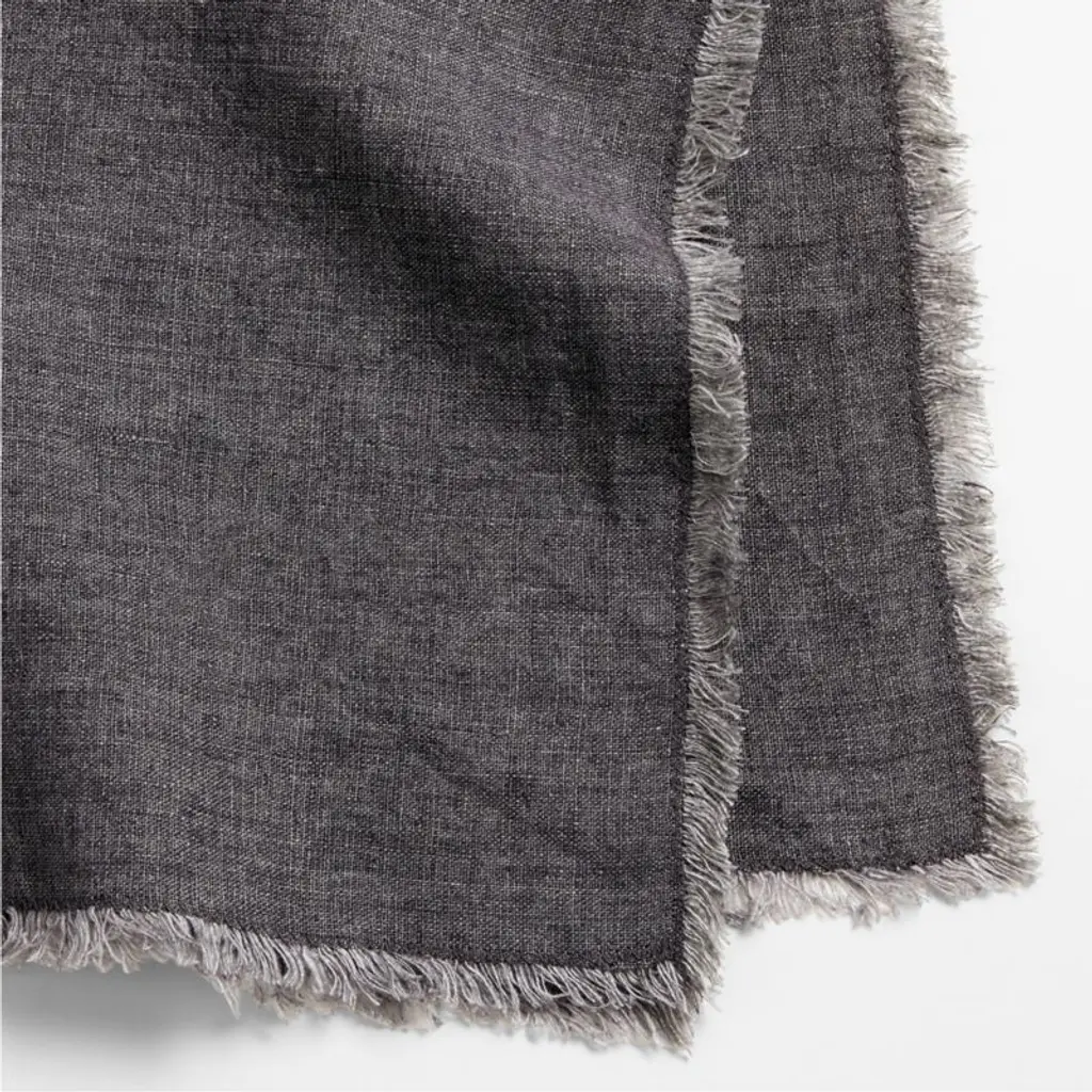 Tonal variation in the warp and weft yarns gives these dark blue napkins great depth of color. A washed finish gives each linen-cotton napkin incredible softness, and the all-round fringe adds a charming casual note.