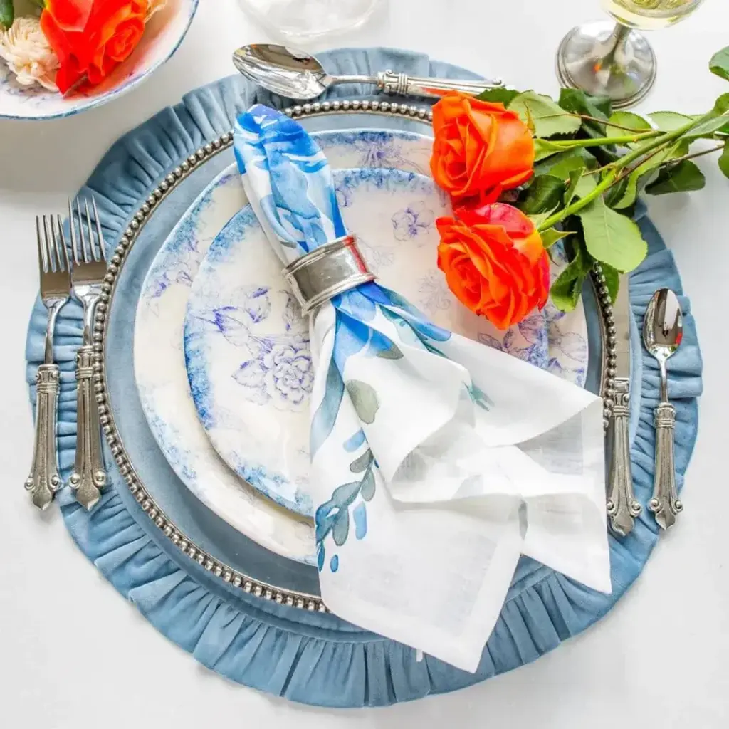 Watercolor Blue Floral, Italian Linen 22" Square Napkin