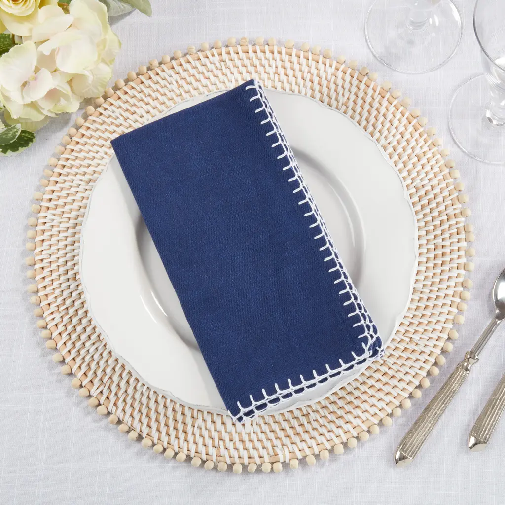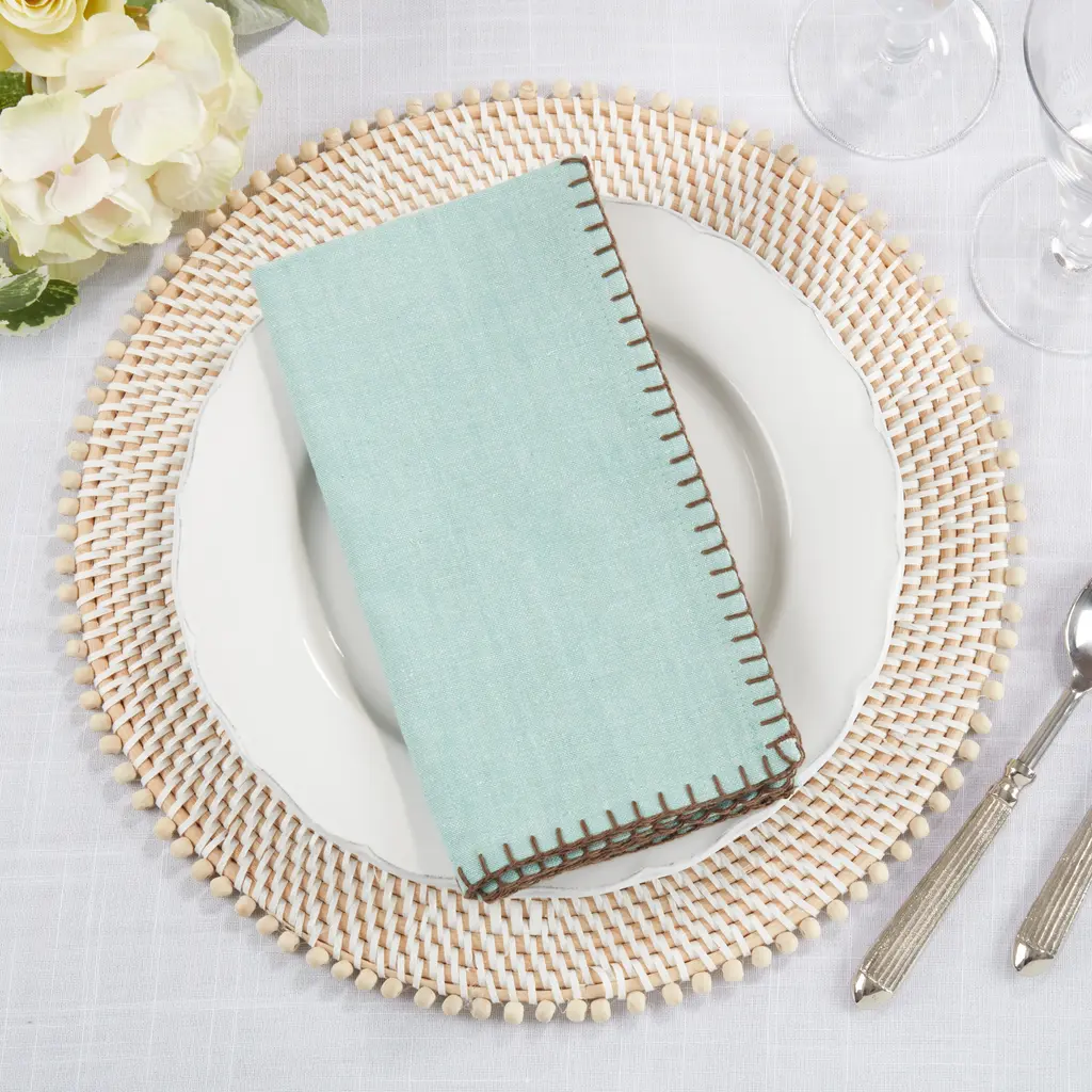 This whipstitched napkin set has a rich, artisan look and lends elevated design interest to any room.