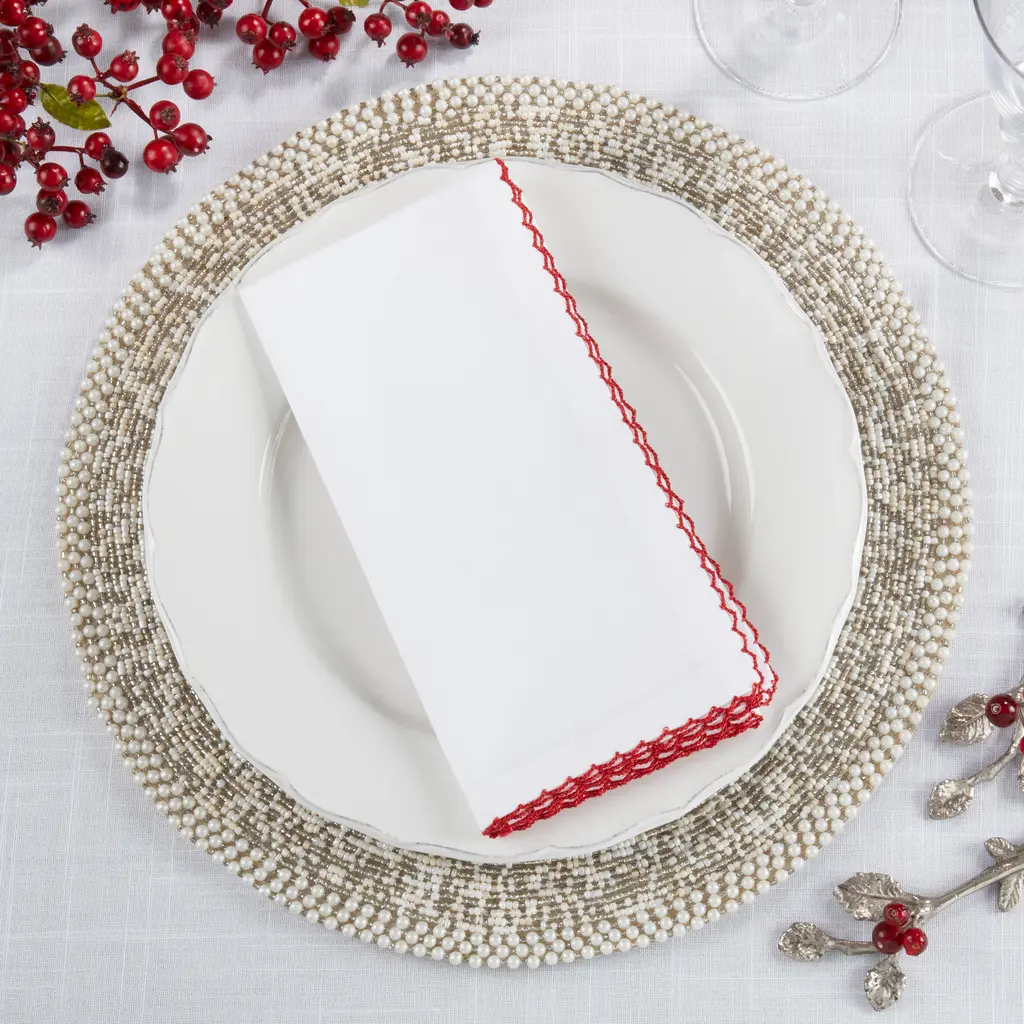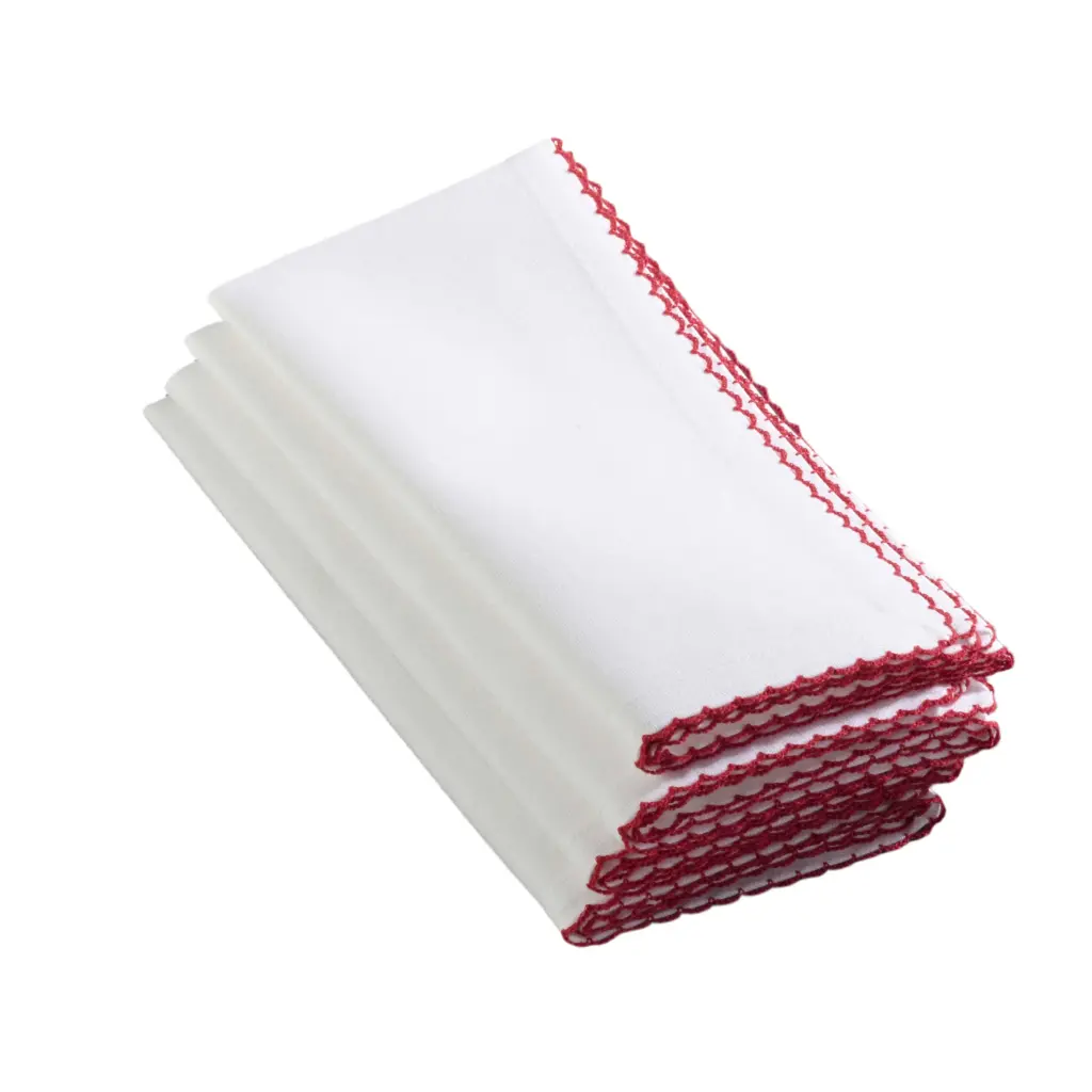Featuring a subtle stitched border on a crisp white cotton background, this beautiful set of Whip Stitched Table Napkins is stylish and versatile at the same time. The cotton napkins can be dressed up for special occasions or pared down for everyday meals. they are soft to the touch, yet long-lasting, ideal for daily use.