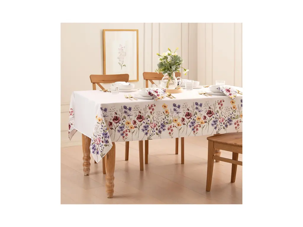 The Poppy Wildflower botanical printed tablecloth is sure to bring a transitional, timeless look to your table setting throughout all seasons. Excellent for special occasions, events, parties, family gatherings or everyday use.