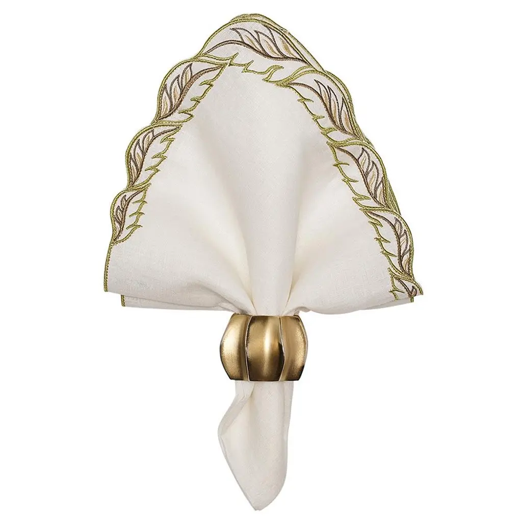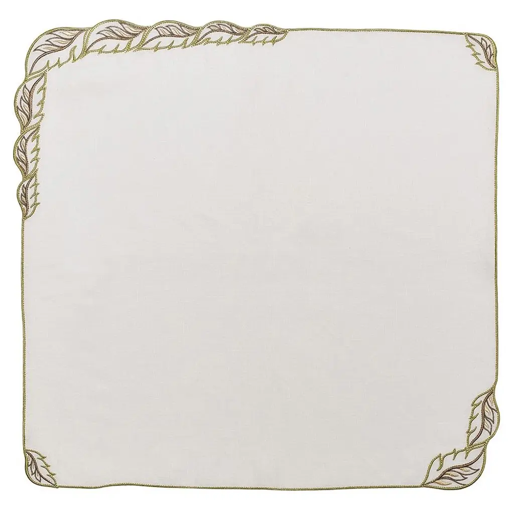 Winding Vine French Green Embroidered White Linen Napkin - Set Of 4