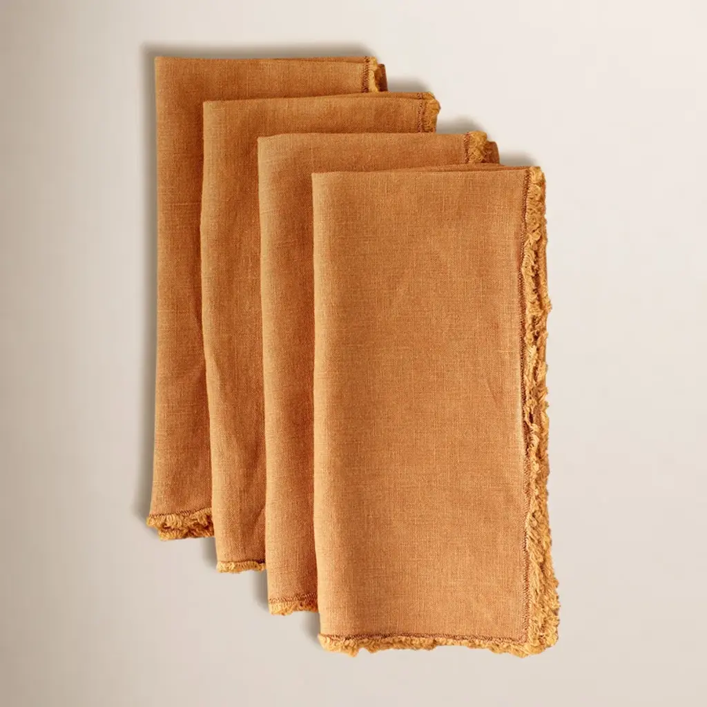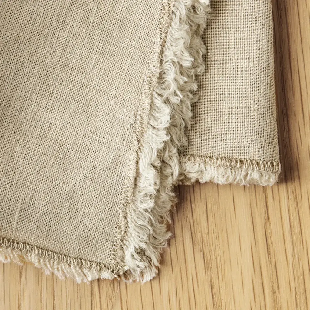 Bring a thoughtfully-curated look to your dining room or kitchen table with this 4-piece placement mat set. Each placemat is crafted from crisp linen in a variety of neutral hues to choose from, and it features fringed edges for an extra tactile layer in your space. These mats have an understated, square silhouette, making them just the right accent piece for casual weeknight meals or a Sunday brunch. Plus, we love that this placemat set is iron-safe and machine-washable for fuss-free upkeep.