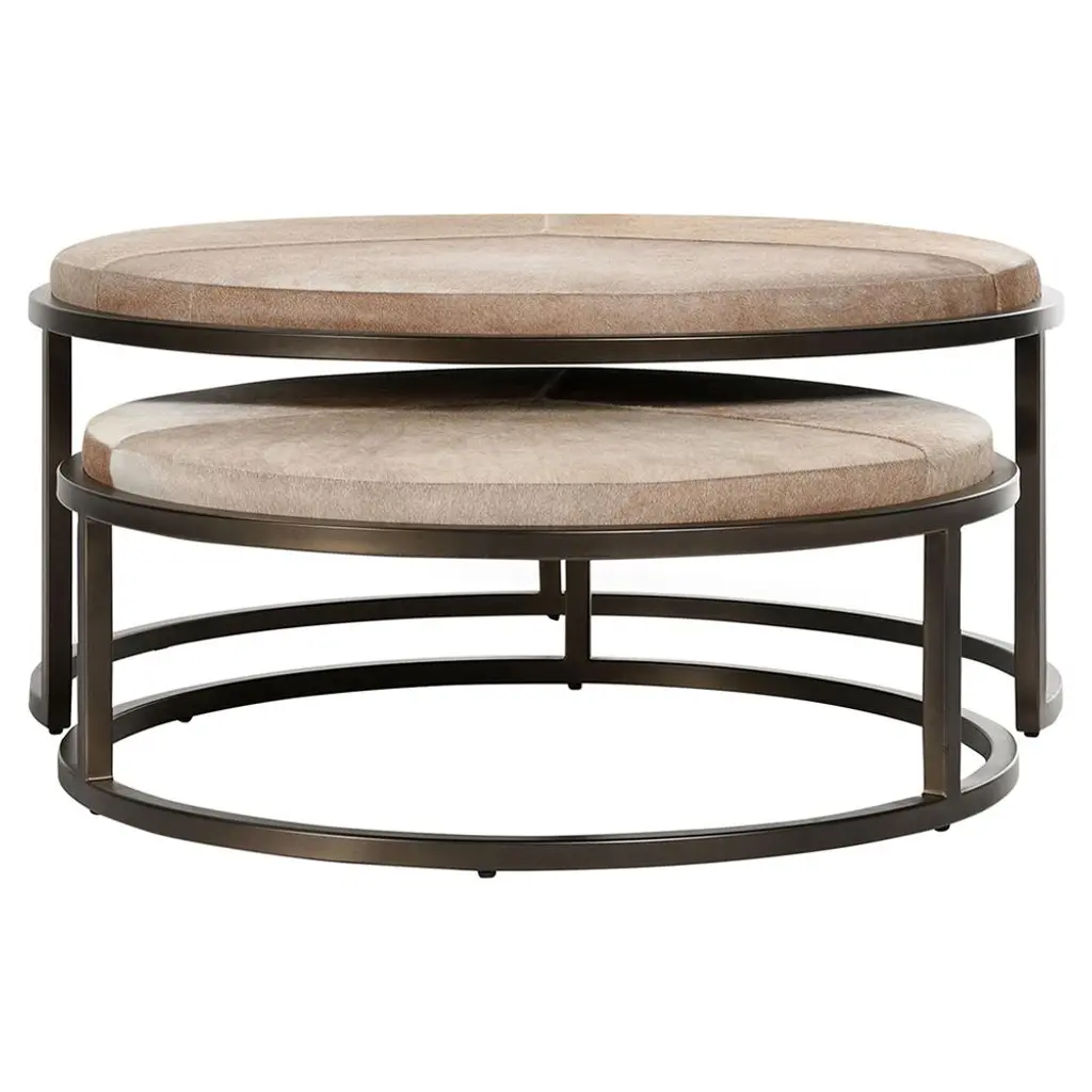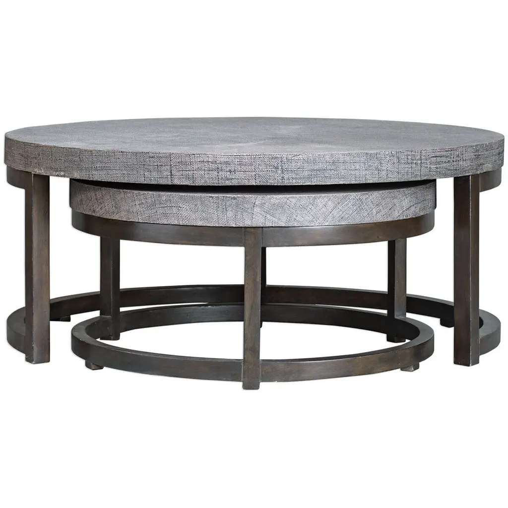 Aiyara 43 X 18 Inch Mushroom Gray Burlap And Hand Rubbed Black Coffee Nesting Tables, Set Of 2