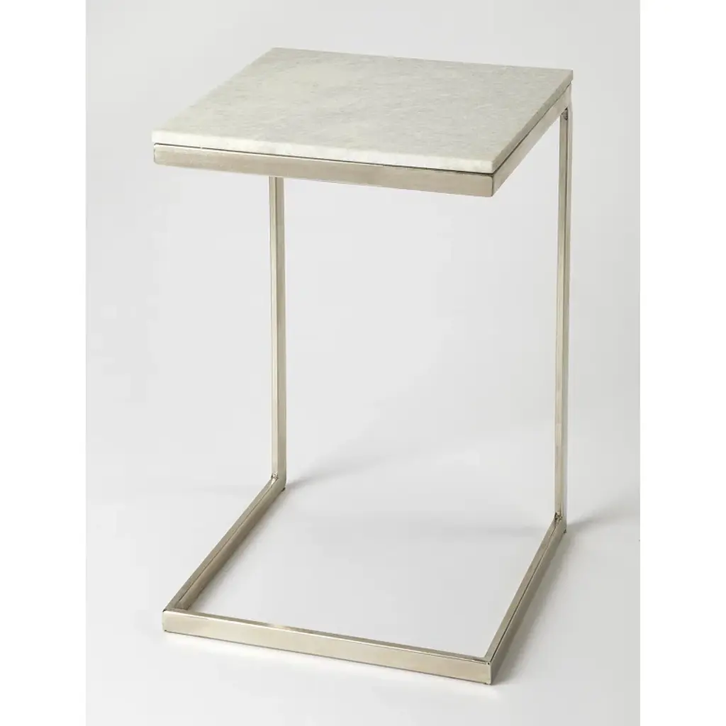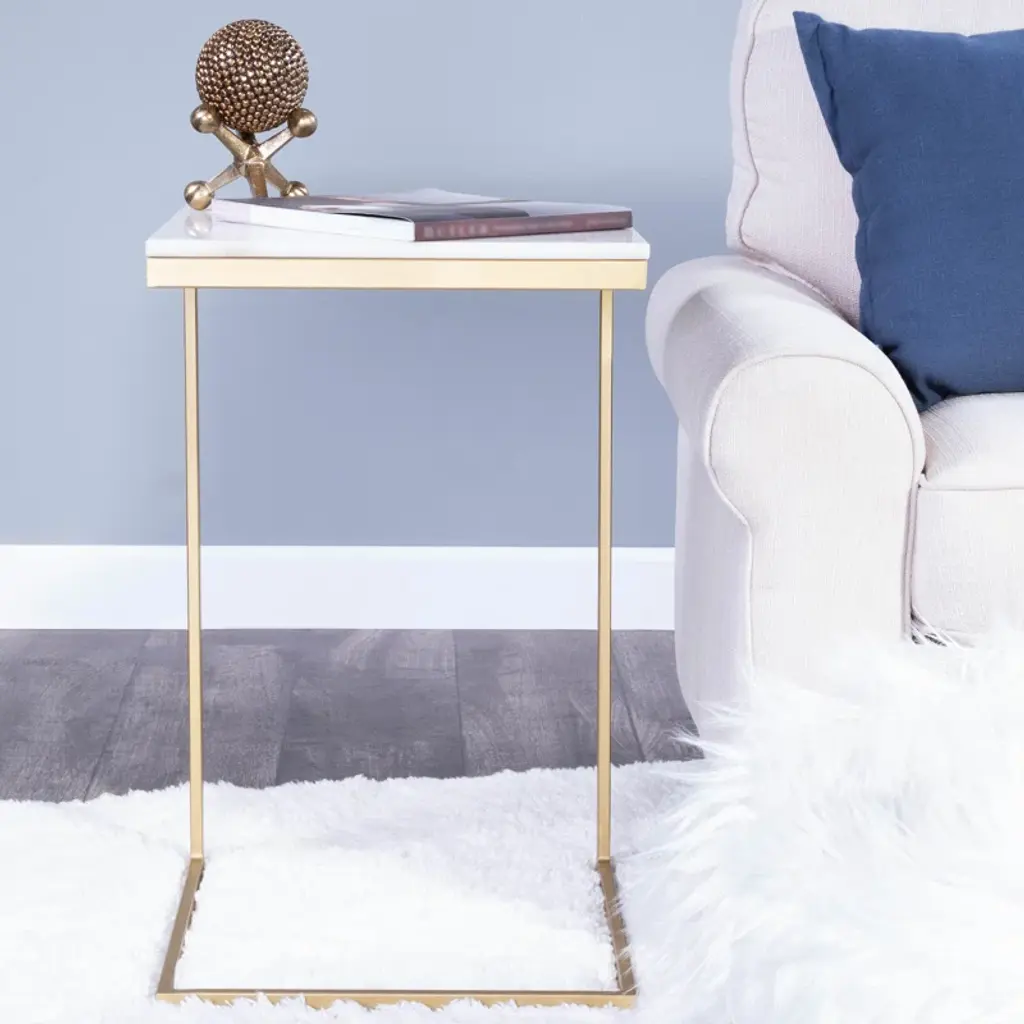Style with a side of practicality. Slim brass-finished iron legs support semicircle tabletops of classic white marble. The nesting feature offers a handy extra surface when it's needed, tucking away with ease when it's not.