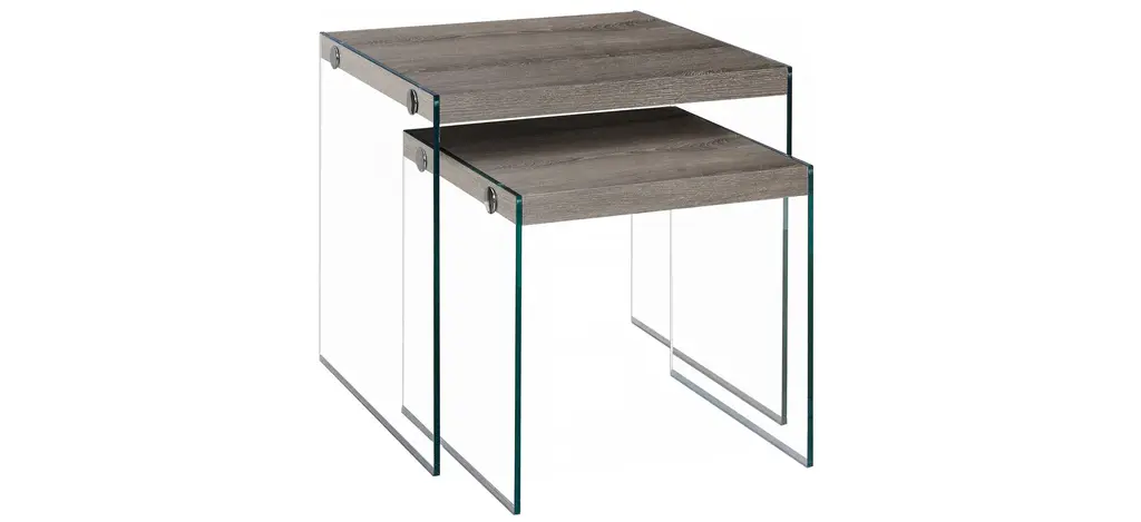 Add our Archer nesting chairside table to your space for a radiant, modern look that will last and last. A gorgeous macchiato finish, layered glass and wooden tops, acacia veneers and a metal base in an antique bronze finish create a look that feels compact and contemporary. This piece pairs beautifully with other occasional tables in our Archer collection.