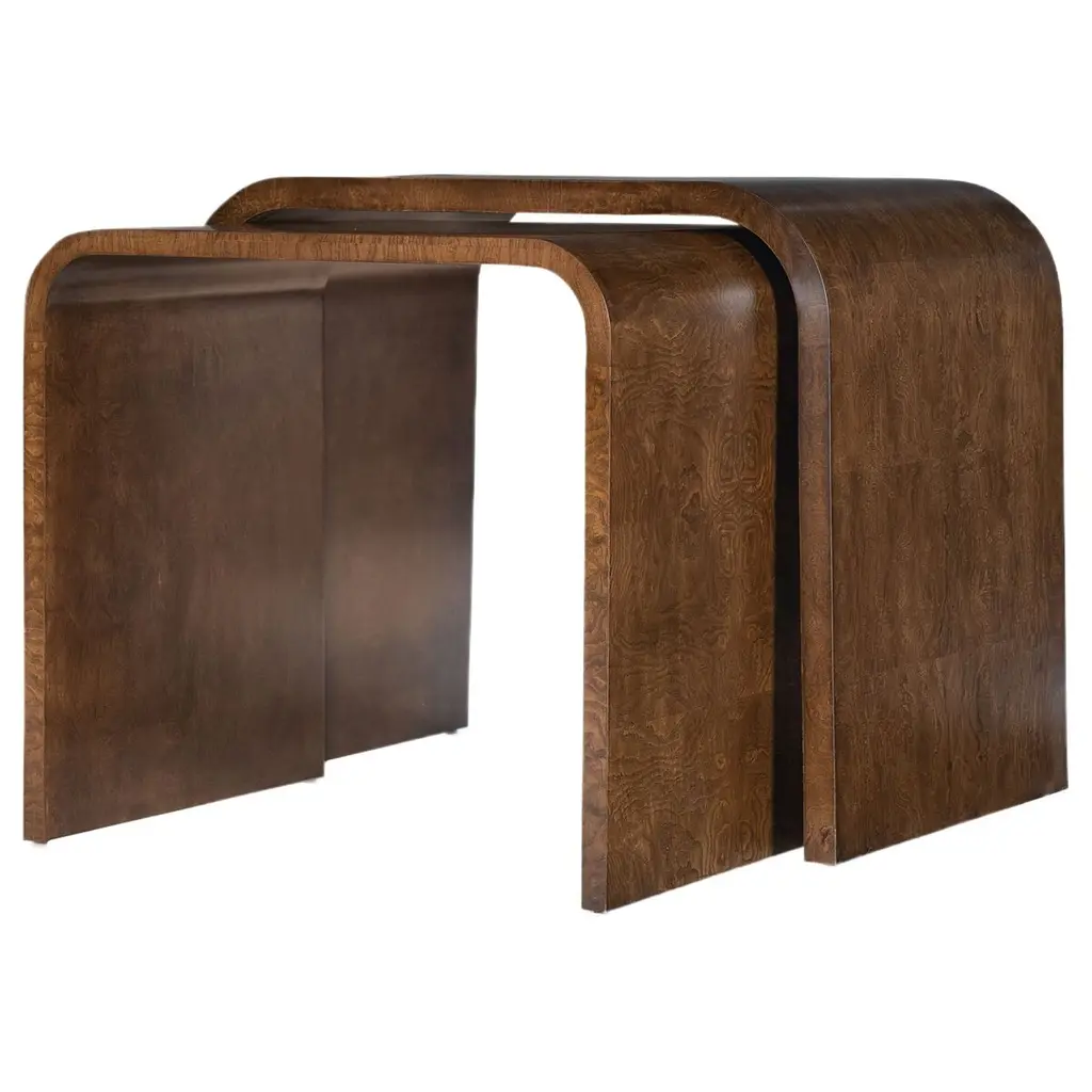 Enhance your living space with the Archives Nesting Tables, a set of two versatile tables designed for both function and beauty. The smaller table fits neatly underneath the larger one, allowing you to maximize space when needed. These nesting tables offer a rich texture and timeless appeal, making them a practical yet stylish addition to your home.