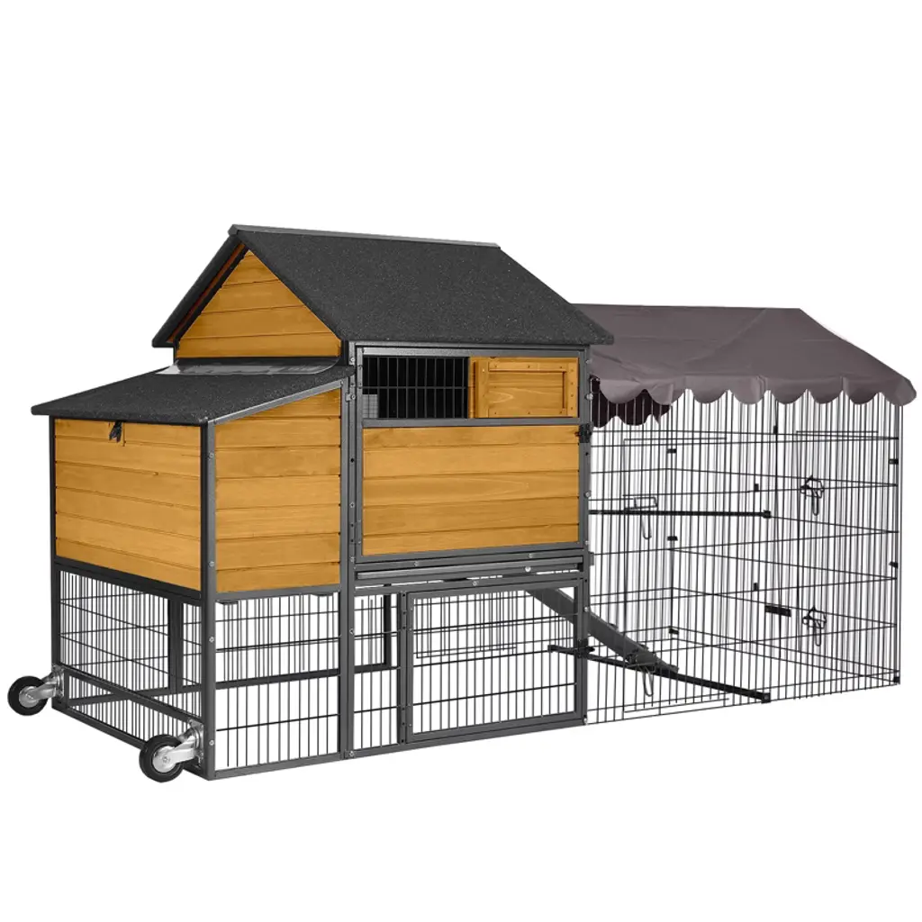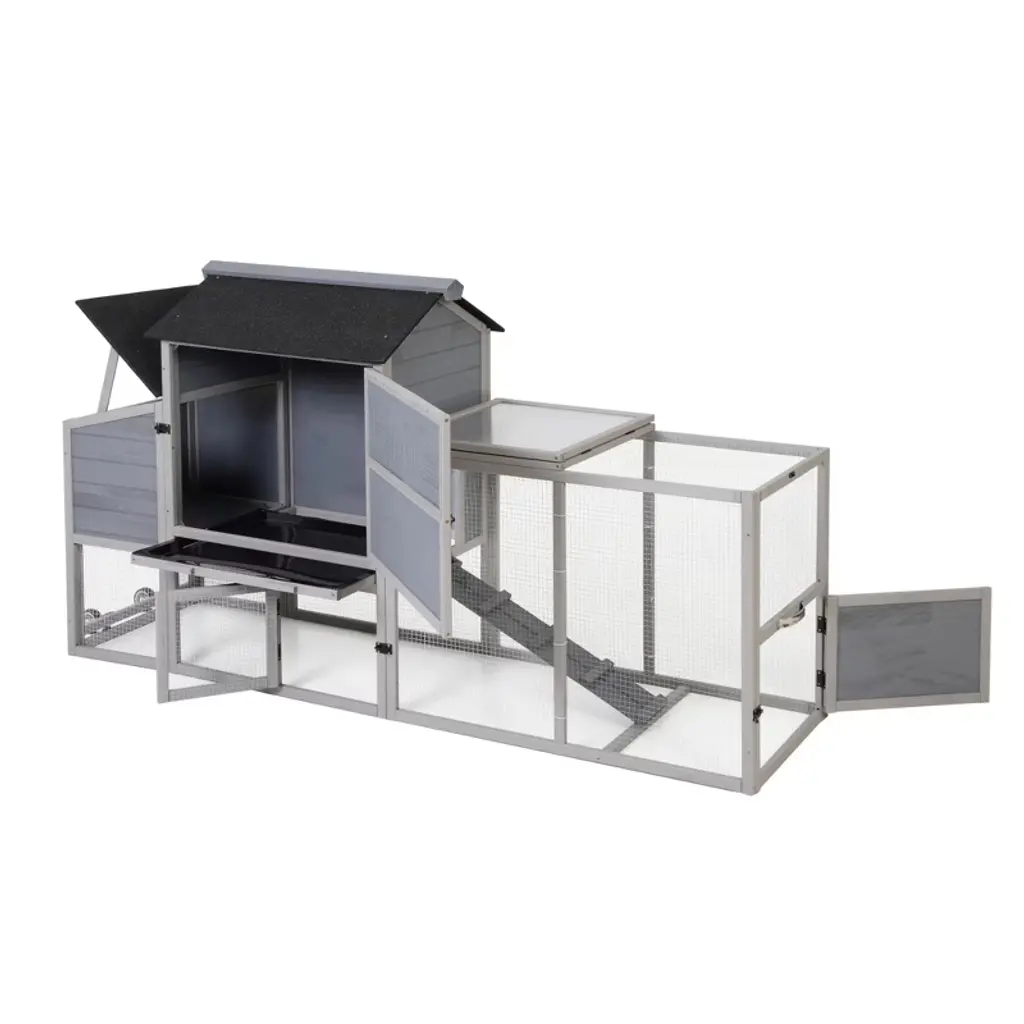 Azl1 Life Concept Pet Crates And Houses Portable Mobile Chicken Coop With Nesting Box, Sleeping Room, Sun Board, Doors, Gray, 82.28"*25.6"*44.88"