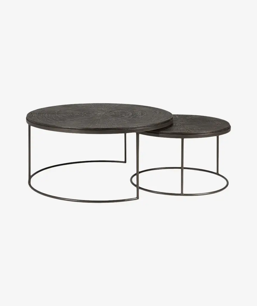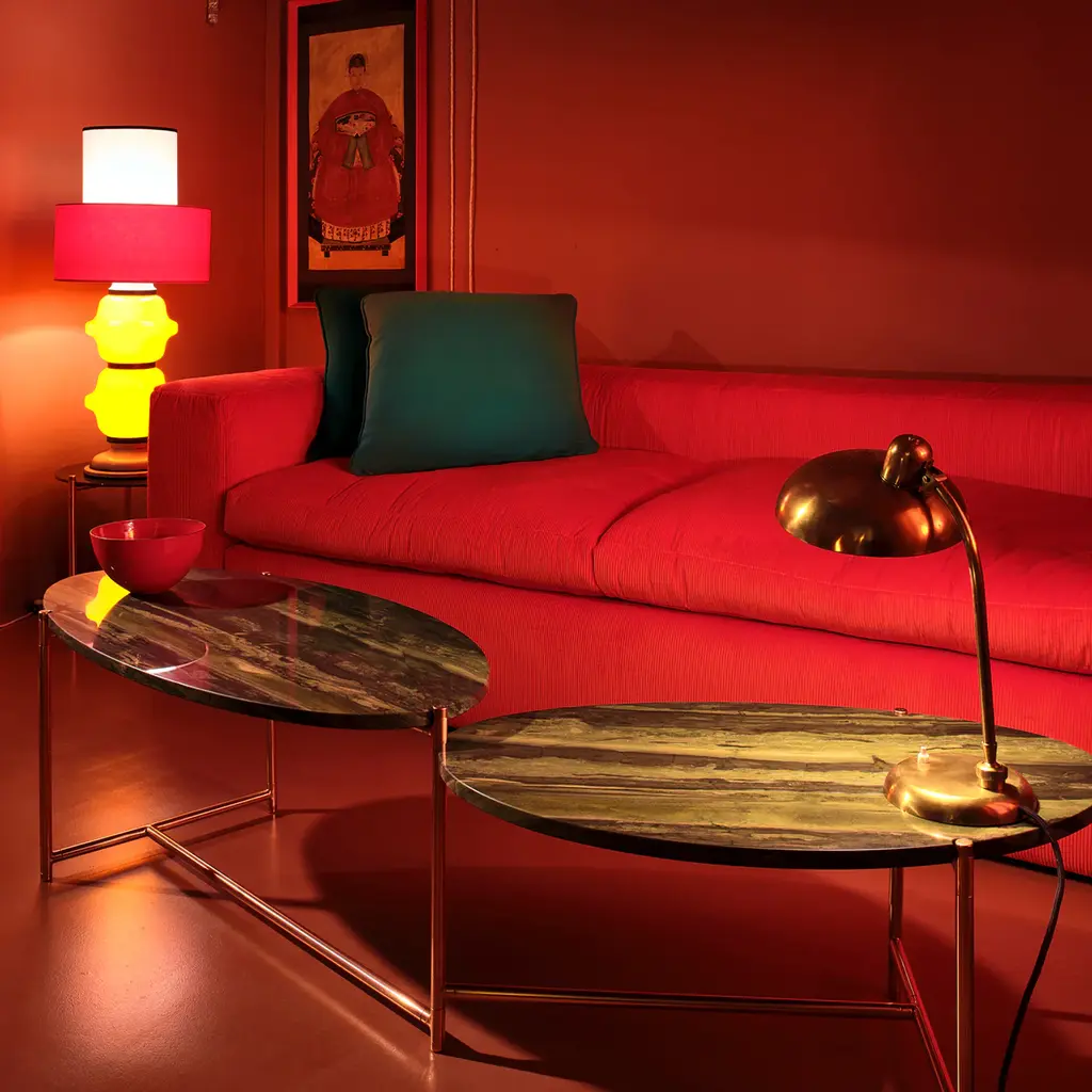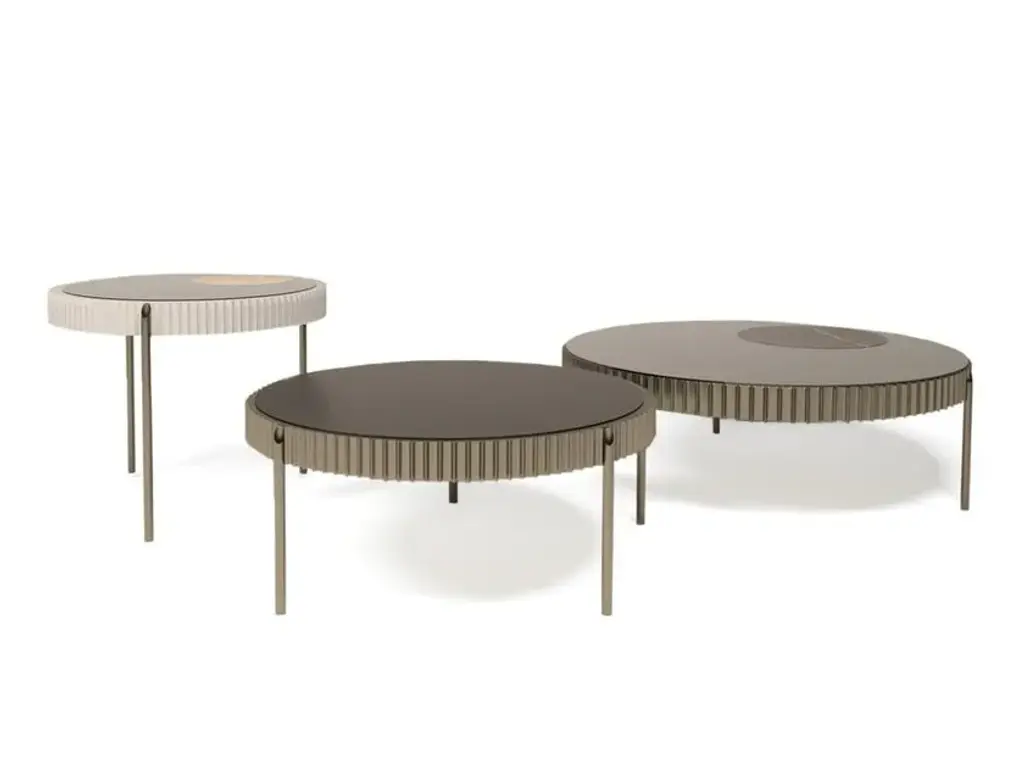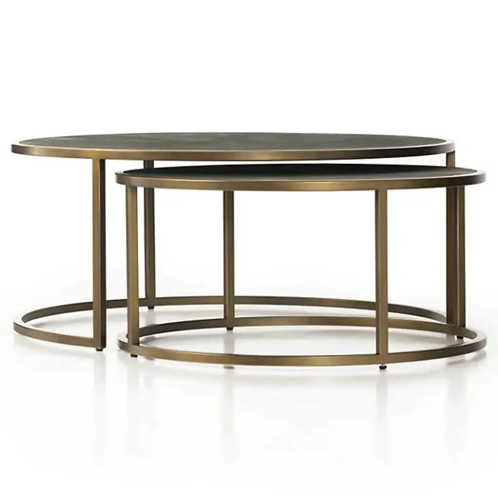 The original Big Sur coffee table features two tops that rotate around a central pivoting point so the table can expand and contract its usable surface. The elegant structure made of steel inside and copper tubing externally provides a rich warm tone that plays beautifully against the natural stone surface. A variety of marble and quartzite tops are available.