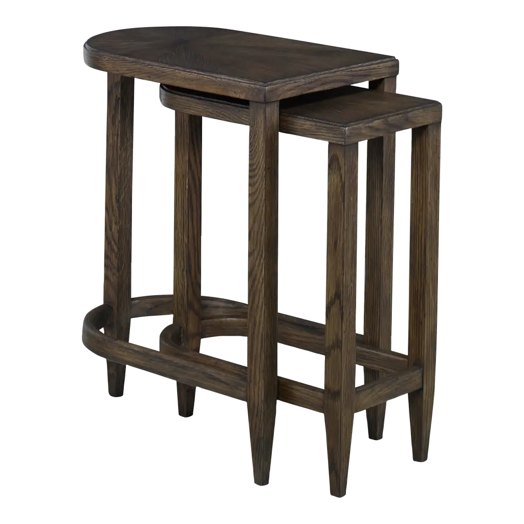 Century Jesse Rustic Lodge Dark Brown Oak Nesting Demilune Side End Table