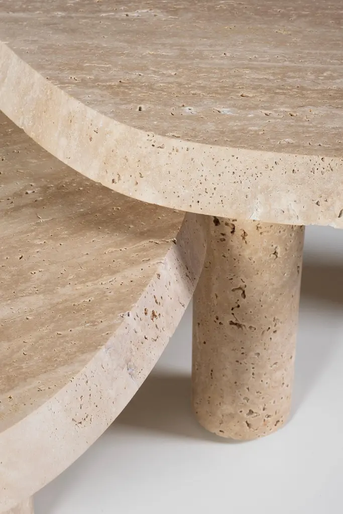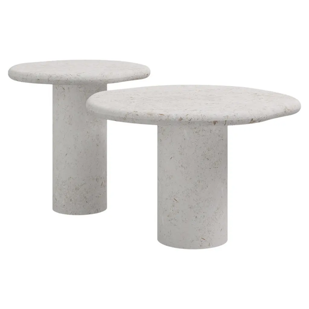 Mid-Century Modern Dornes Coffee Tables, Contemporary Collection, Handcrafted in Portugal - Europe by Greenapple.The Dornes travertine nesting coffee table set is a tribute to Portugal’s scenic beauty and historical heritage. Its organic design mirrors the contours of the village of Dornes, capturing the harmony between nature and craftsmanship. With its natural tones and sculptural form, the Dornes coffee table set brings warmth and character to contemporary interiors.The Dornes coffee set consists of two coffee tables, each crafted from honed travertine with matte finish. The Dornes coffee set can be customized in terms of dimensions, materials and finishes.Set of 2 Dornes Coffee Tables DimensionsMedium:W.76 x De.69 x H.41cmW.29.9 x De.27.2 x H.16.1 in.Large:W.105 x De.100 x H.35cmW.41.3 x De.39.4 x H.13.8 in.Set of 2 Dornes Coffee Tables Material CodesST065 Travertine Limestone, Honed, Beige, MatteHandcrafted in Portugal - Europe by GreenappleUnique by design, Crafted by peopleGreenapple transforms contemporary spaces into exclusive narratives of design and craftsmanship. From custom-made furniture to bespoke interiors, each creation is a timeless work of art, shaped by master artisans who honor centuries-old techniques.Founded in 2005 by Sérgio Rebola and Rute Martins, Greenapple has earned global recognition among high-end clientele and leading design firms. While Rute designs each unique piece, Sérgio ensures uncompromising quality from design to production and from production to your home. We provide a seamless experience, offering short production lead times, worldwide delivery within 7 to 10 days, and white-glove service upon request.For U.S. clients, we can handle all customs clearance, cover duties, and offer white-glove service as well upon request.Cocktail Table, Center Table, Centre Table, Low Table, Tea Table