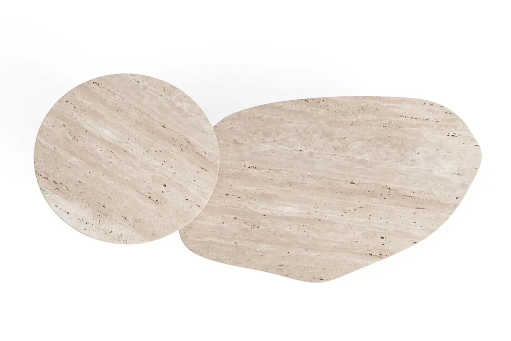 Contemporary Landscape Nesting Coffee Table Set/2 Travertine Handmade Greenapple