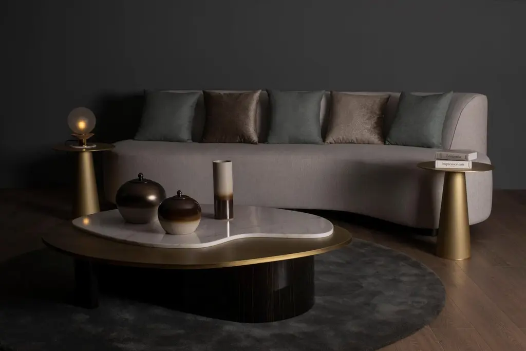 Mid-Century Modern Landscape Coffee Tables, Contemporary Collection, Handcrafted in Portugal - Europe by Greenapple.The Landscape nesting coffee table draws inspiration from the organic beauty of natural landscapes. Its flowing form evokes the gentle contours of rolling hills and shifting sands, capturing the movement of nature in a sculptural design. Created to bring depth and artistic expression to contemporary interiors, the Landscape nesting coffee table adds a sense of balance and tranquility to any space.The Landscape coffee set consists of two coffee tables, each featuring wooden semicircular legs veneered in stained black American Oak with open-pore and matte varnish. The veneer is anti-fungal and vermin-free.The table top is crafted from Travertine limestone in cream tones that adds contrast to the design.The set of 2 Landscape coffee tables can be customized in terms of dimensions, materials and finishes.Set of 2 Landscape Coffee Tables DimensionsMedium:W.76 x De.69 x H.45cmW.29.92 x De.27.17 x H.17.72 in.Large:W.122 x De.78 x H.35cmW.48.03 x De.30.71 x H.13.78 in.Set of 2 Landscape Coffee Tables Material CodesST065 Travertine Limestone, Honed, Beige, MatteWD107 American Oak, Stained Open-pore, Varnished, Black, MatteHandcrafted in Portugal - Europe by GreenappleUnique by design, Crafted by peopleGreenapple transforms contemporary spaces into exclusive narratives of design and craftsmanship. From custom-made furniture to bespoke interiors, each creation is a timeless work of art, shaped by master artisans who honor centuries-old techniques.Founded in 2005 by Sérgio Rebola and Rute Martins, Greenapple has earned global recognition among high-end clientele and leading design firms. While Rute designs each unique piece, Sérgio ensures uncompromising quality from design to production and from production to your home. We provide a seamless experience, offering short production lead times, worldwide delivery within 7 to 10 days, and white-glove service upon request.For U.S. clients, we can handle all customs clearance, cover duties, and offer white-glove service as well upon request.Cocktail Table, Center Table, Centre Table, Low Table, Tea Table