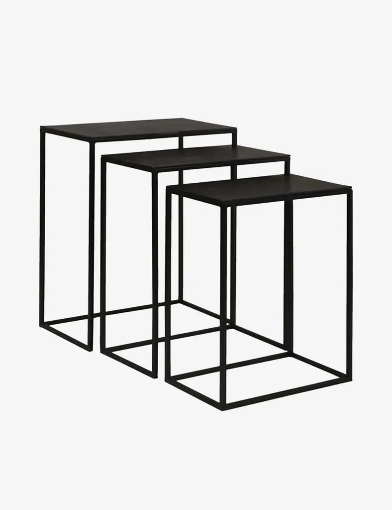 Functional Nesting Tables Constructed In An Aged Black Iron, Featuring A Textured Cast Aluminum Slab Top Finished In A Plated Antique Bronze. Sizes: Sm-17x22x9, Med-20x24x10, Lg-21x26x11