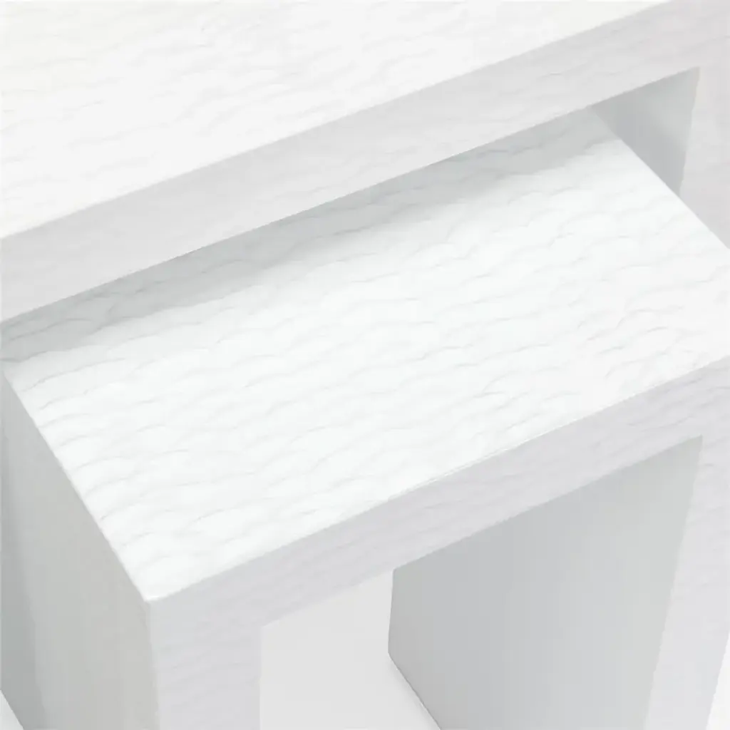 With a timeless profile, the Dracaena Nesting Tables offers both utility and artistic flair to any interior space. A stunning Silver on White finish bestows modern flair, while gorgeous scale patterns can be seen adorning the entirety of the twin pieces to provide a wealth of texture and visual interest. Gorgeous by themselves, these tables shine exceptionally brightly when placed alongside other Dracaena pieces.
