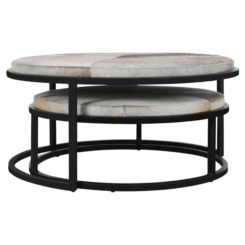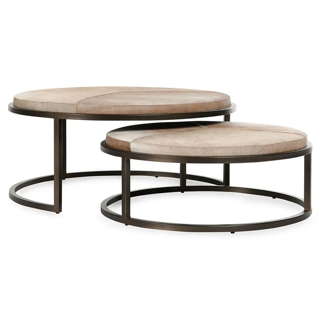 Flynn Modern Classic Beige Hide Bronze Iron Round Nesting Tables