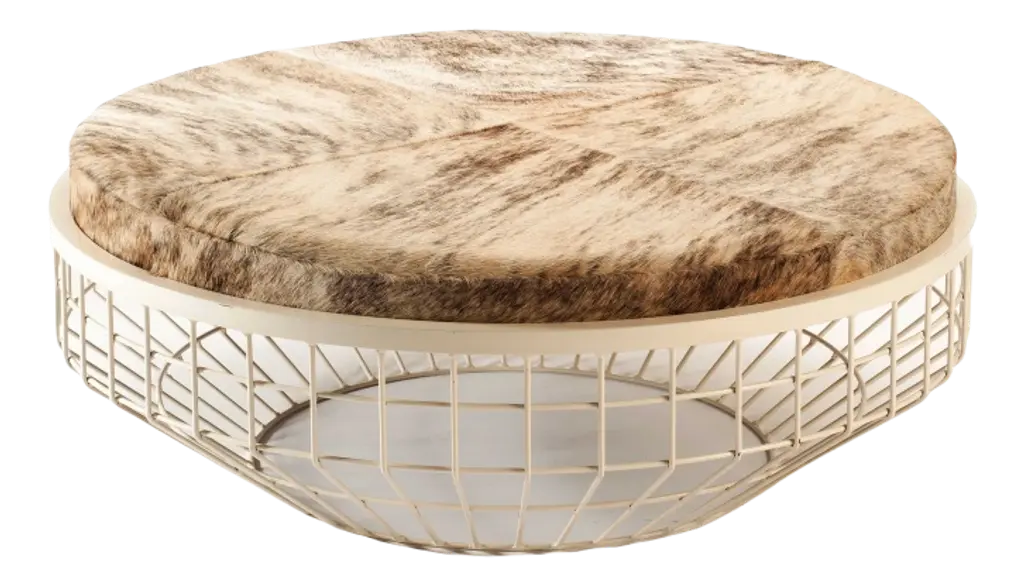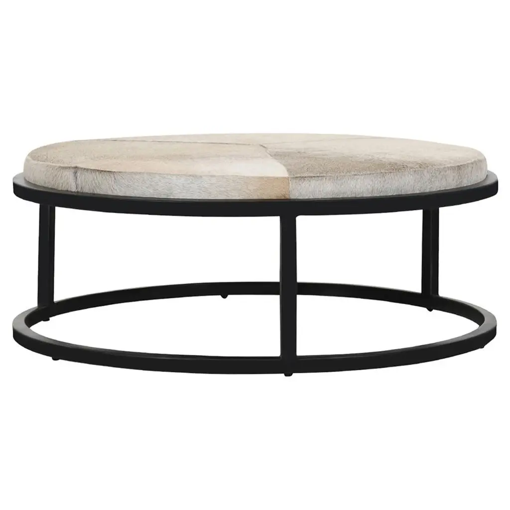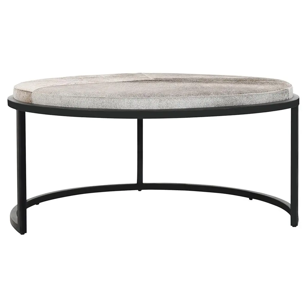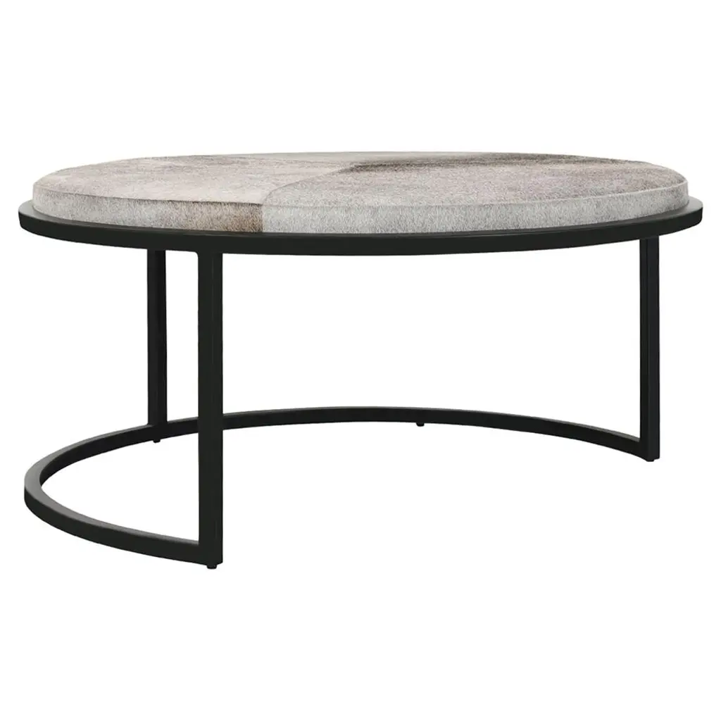 Flynn Modern Classic Grey Hide Black Iron Round Nesting Tables