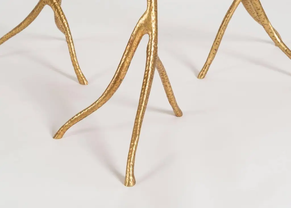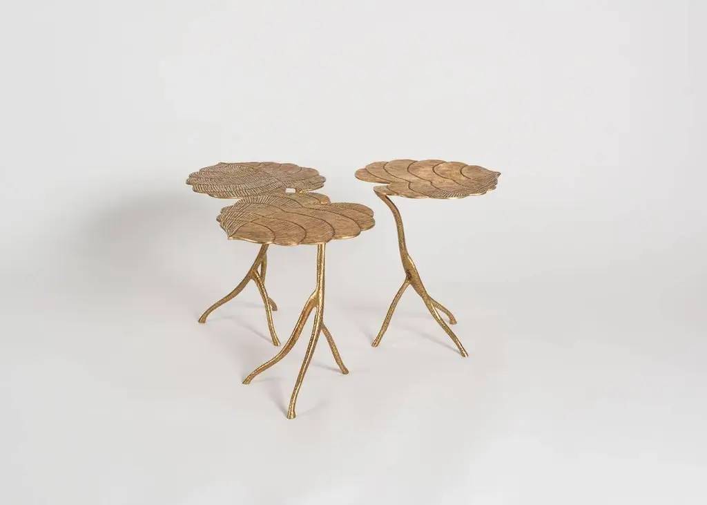 Franck Evennou's remarkable Taro nesting tables mimic the Asian root's broad leaves and stem, and his choice of material, and the evidence of his masterful hand, serve to contrast, as well as to amplify, the tables' beautifully natural and asymmetrical forms. Signed and numbered. Edition of 99.Franck Evennou expresses himself in bronze as others express themselves in verse—he has a poetic language inspired by nature, and by all subjects that carry the residue of their pasts, and creates nostalgic works steeped in the stories that inspired them.He is an artist that knows no borders—designations for art (such as sculpture, furniture, or jewelry) are of little importance to Evennou, who sees them all as worthy methods of expression—their practice the methods by which he evokes the natural, the beautiful, and the historic.His favorite materials are wood and bronze with patinas varying from gold to brown. He works traditionally, following in the steps of the French artisans who preceded him. His prints are limited, numbered, and signed.Evennou’s work is represented by the Avant-Scène gallery in Paris, and by Maison Gerard in New York. He has made numerous pieces for collectors, and executed exceptional commissions, one of which was the monumental door of the residence of the French Embassy in Lebanon, commissioned by the Ministry of Foreign Affairs.He collaborated for many years with the Contrasts Gallery in Hong Kong and Shanghai, created objects and furniture in bronze and glass églomisé for Daum, jewelry for the Mint of Paris, objects for En Attendant les Barbares, and has designed collections for many companies known in the field of decorative arts.He also has worked with a number of institutions like the Mobilier National, for which he created an elaborate sculptural office, and the Musée de la Chasse et de la Nature à Paris, for which he constructed a forest of bronze.