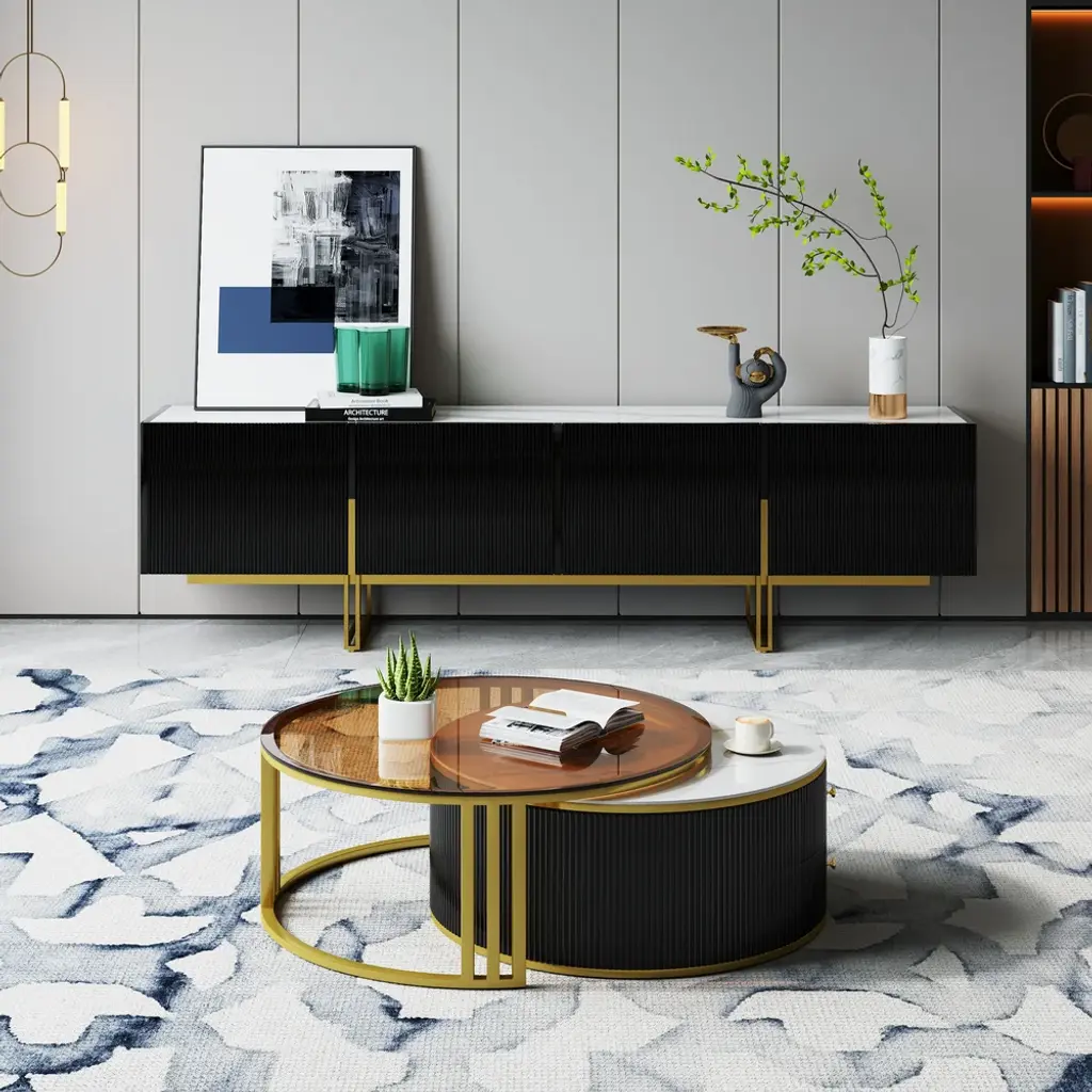 Grovyn 86.6" Tv Stand & Nesting Coffee Table Set