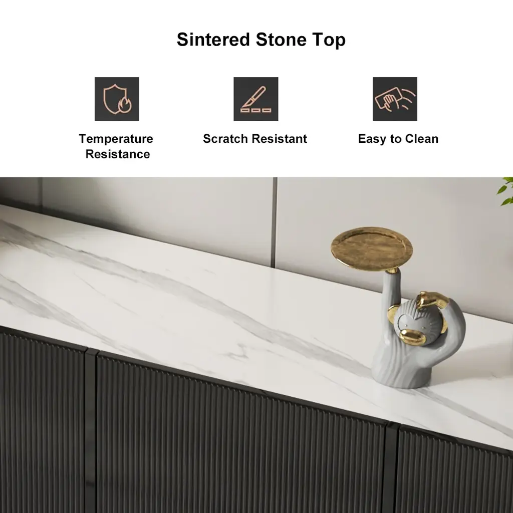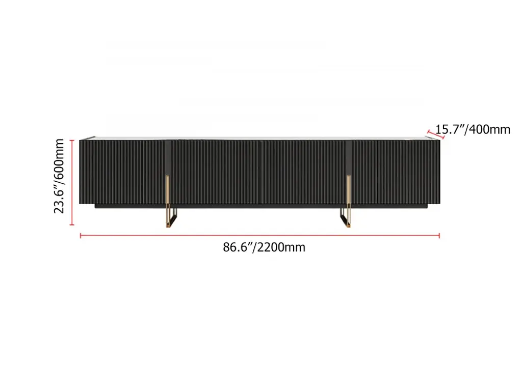 This modern TV stand features a premium stone top for both aesthetics and functionality. It would fit perfectly into any modern room since its design features something in clean lines and understated elegance. The TV stand includes plenty of storage for all the media devices and accessories you have to keep your entertainment area free of clutter.