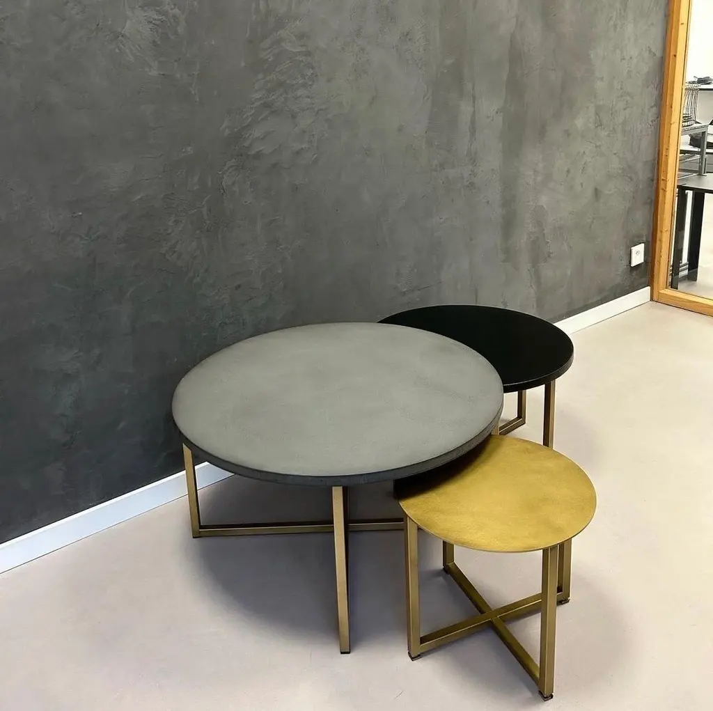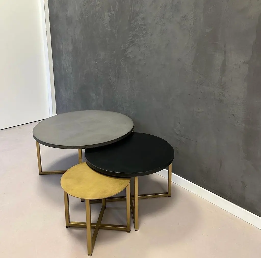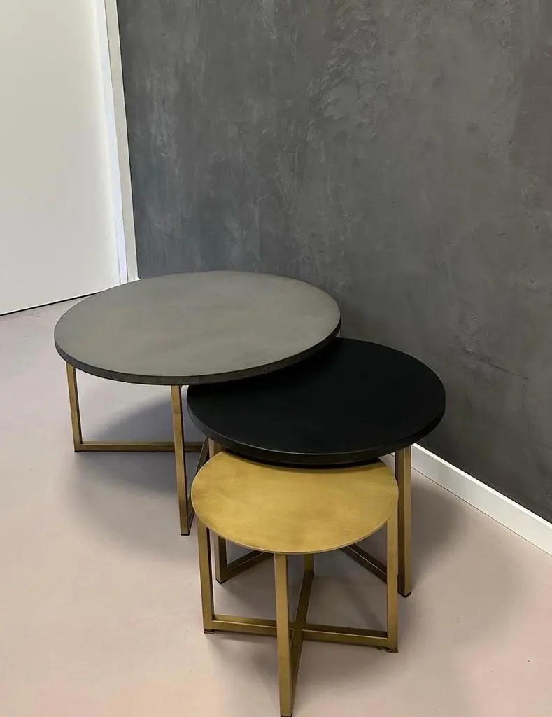 The beauty and high quality of handmade concrete and metal tables made in France are unparalleled in the world of furniture. The blending of these two materials results in pieces that are not only durable and functional, but also visually stunning. The concrete provides a strong foundation, while the metal adds a touch of sophistication and industrial charm. Each table is crafted with care by French artisans, ensuring that no two are exactly alike and adding to their unique appeal. The combination of beauty and functionality makes these tables not only a statement piece for your home, but a long-lasting investment. Choose a handmade concrete and metal table made in France for a piece that is both beautiful and built to last.Tables on the pictures are sold as a set of three tables of three different sizes : (80 cm-17 kg)/(60 cm-11 kg)/(40 cm-7 kg).