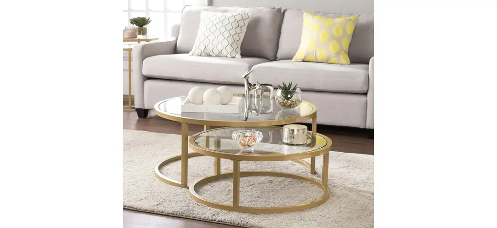 The Harrison Nesting Cocktail Table Set create extra space to accommodate all your design goals. Pull the round cocktail tables apart for hors d'oeuvres and drinks, or slide them together to instantly createa dance floor. Play with the levels and add linear shapes to create dimensional drama, or use flowers or candles to soften a living room. Whatever your vision, these swanky, layered coffee tables multitask while enhancing your style.