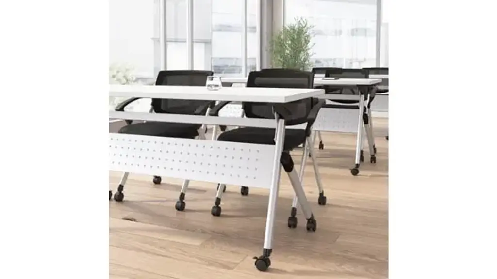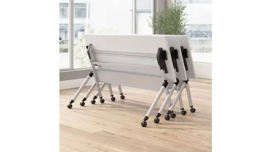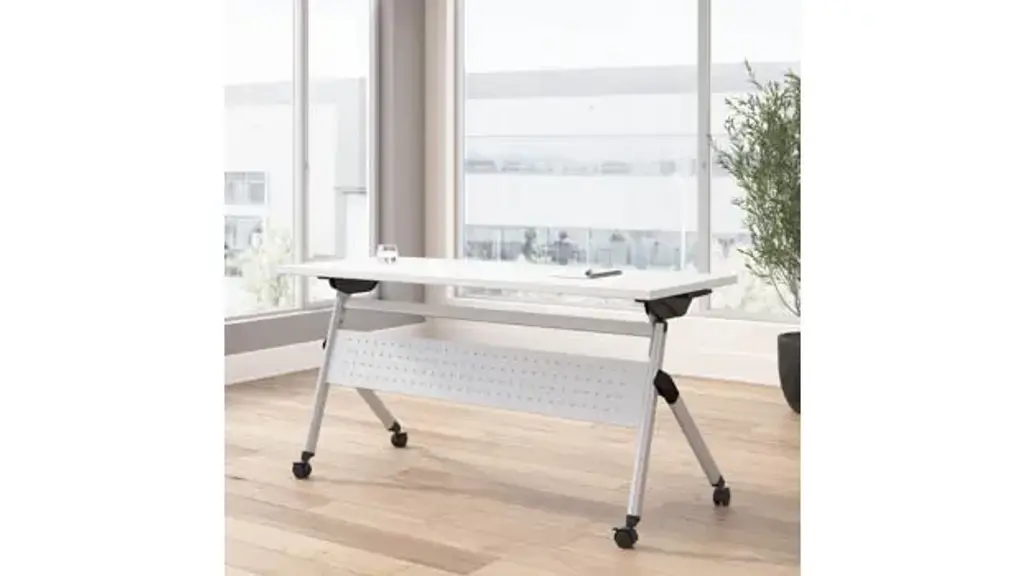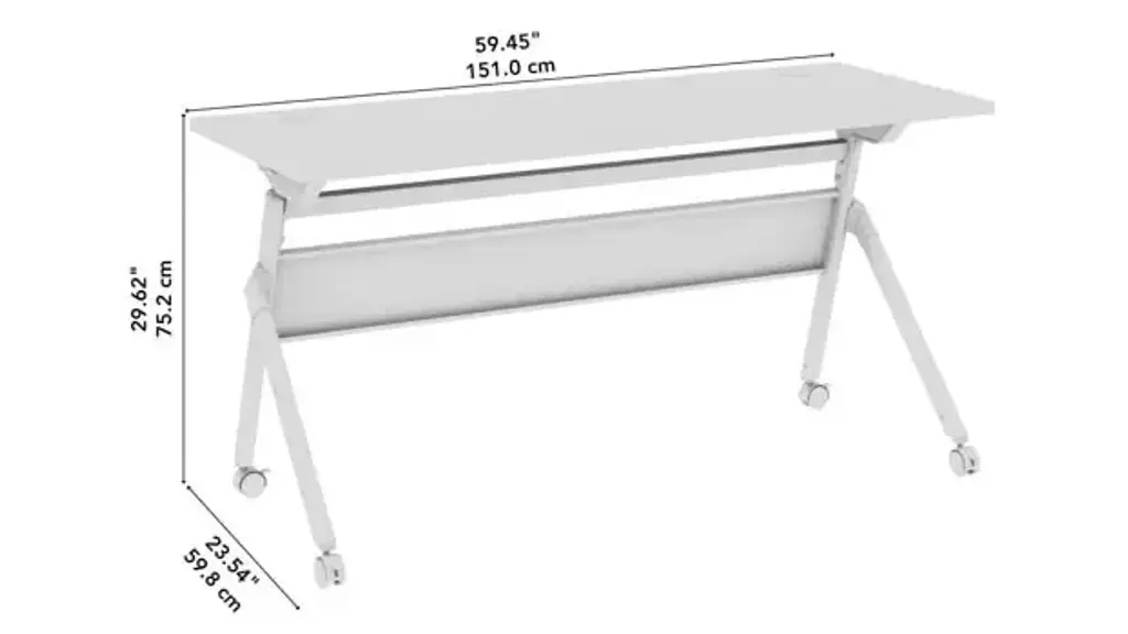 Transform your classroom or training facility with the Bush Business Furniture Envision 60" W Folding Training Table, designed to provide ample workspace that folds and stores easily, making room for dynamic learning experiences. 60" W Folding Training Table is designed to be set up quickly and can be reconfigured at a moment's notice. Durable 1-inch thick thermally fused laminate surface protects against scratches, stains, and other cosmetic damage and offers 2 wire management grommets on surface. Sturdy metal base gives the work surface a weight capacity of 75 lbs. to support a laptop, reference materials and more. Dual-wheeled casters roll on carpeted or hard surfaces and lock in place for secure positioning. Built-in privacy panel makes the training table perfect for use in any open office or classroom. Easy-to-use lever flips the top vertically, allowing multiple folding tables to nest together for convenient storage. Complete your training area with Mesh Back Folding Chairs and a variety of coordinating storage (sold separately). Bush Business Furniture's commitment to safety includes rigorous testing that meets or exceeds ANSI/BIFMA 5.5 commercial test standards. North American made with globally sourced materials. Overall Dimensions: 59.45" W x 23.54" D x 29.62" H. Ships ready for easy assembly.