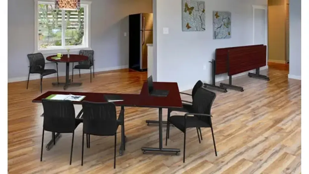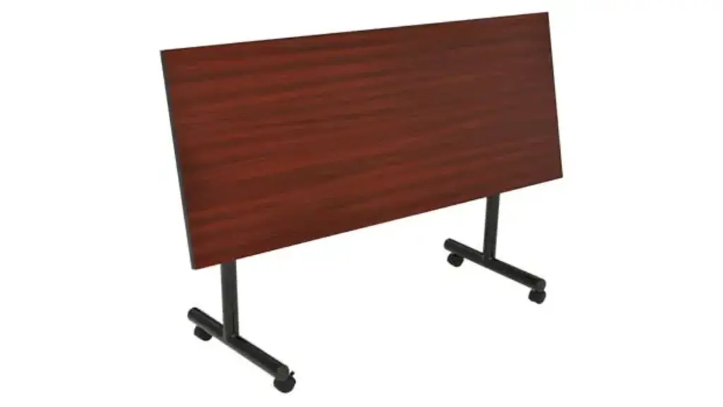 Set up a meeting room in a flash with Kobe Flip Top Tables. Unlock the quick-release lever and flip down the entire tabletop to nest together when not in use. Perfect for rooms with variable class size, the Flip Top tables save set up time and storage space. This 60-inch long table is constructed of a thermal fused melamine laminate tabletop that is 1-inch thick and finished with a black T-Mold edge band. Mahogany tabletop is double sided and finished in Grey on the other side. Noble Oak laminate has Neo Walnut on the other side. Cherry laminate has Maple laminate on the other side. Simply pick the side you like and install the base on the other. Self tapping wood screws and a placement template are included. Laminates are scratch, stain and scald resistant and wipe clean easily. Rounded corners make the table safer for everyone. The base is constructed of black tubular steel. Locking casters make these tables mobile and are ideal for computer labs, training rooms, classrooms and more. Overall Dimensions: 60" W x 24" D x 29" H. Minimum order of 2 tables. Ships ready for easy assembly.