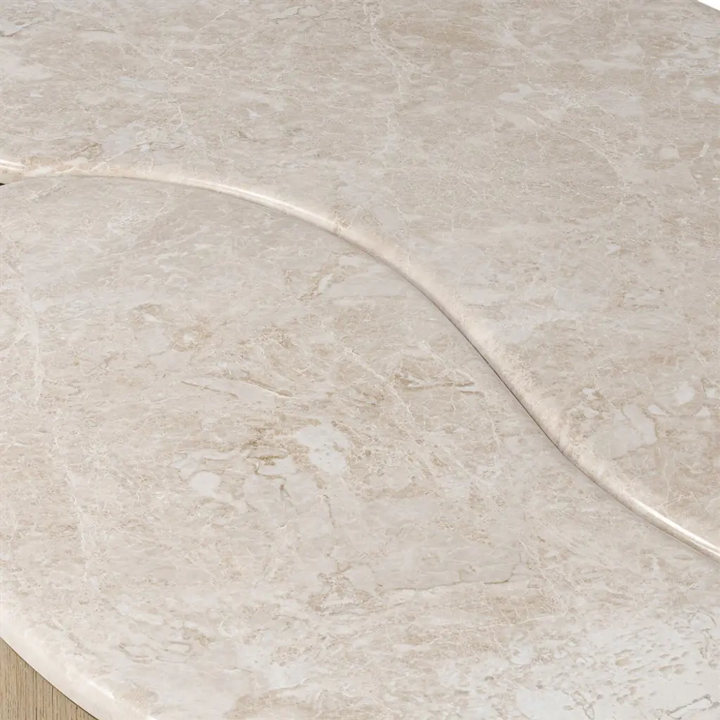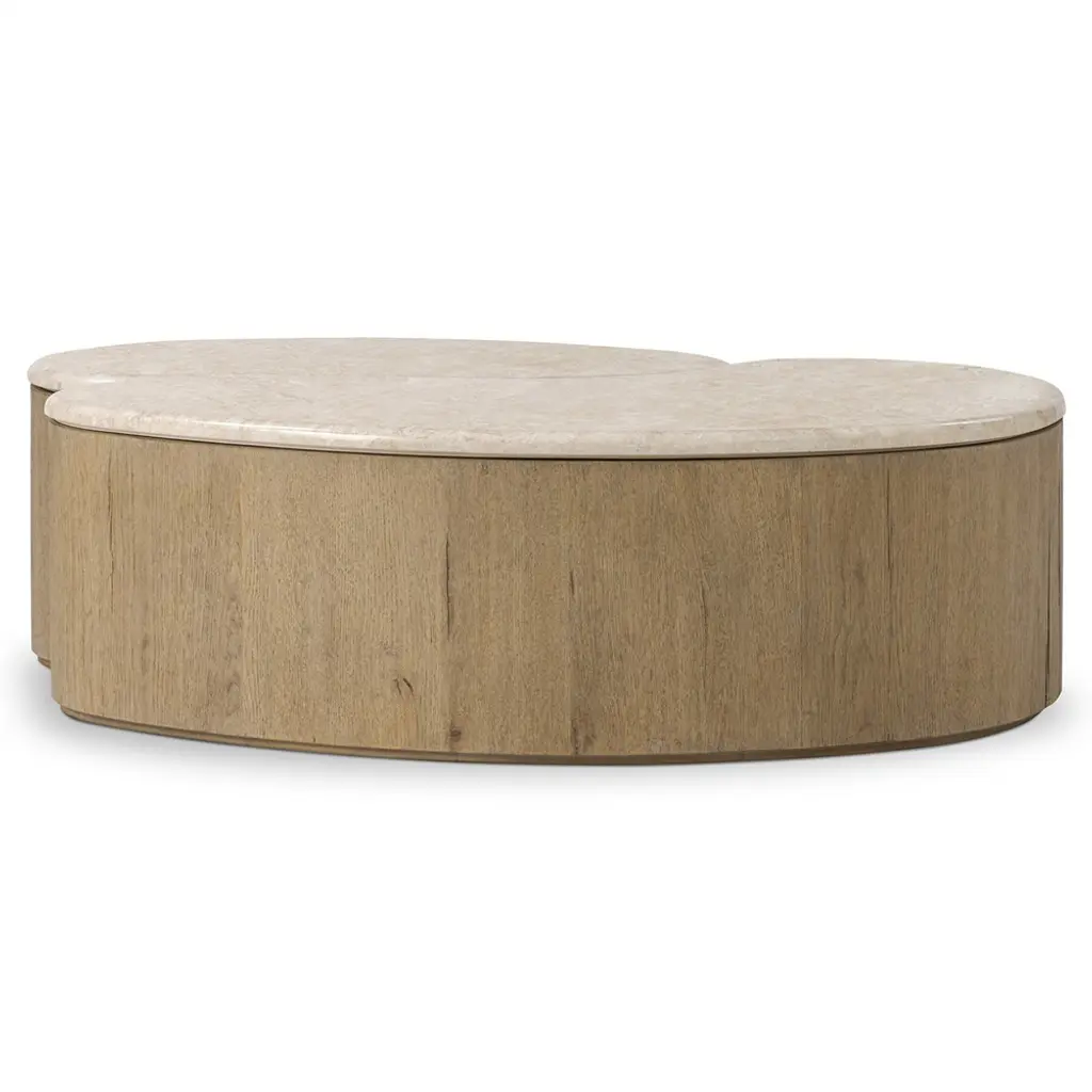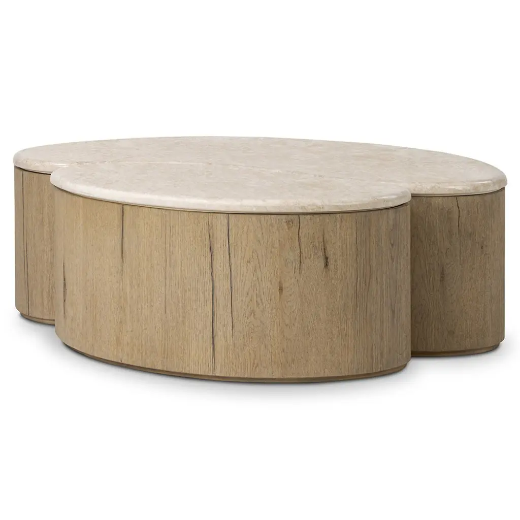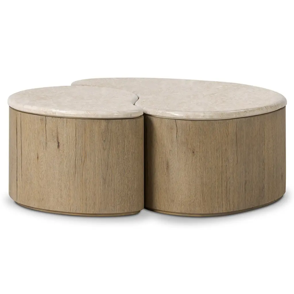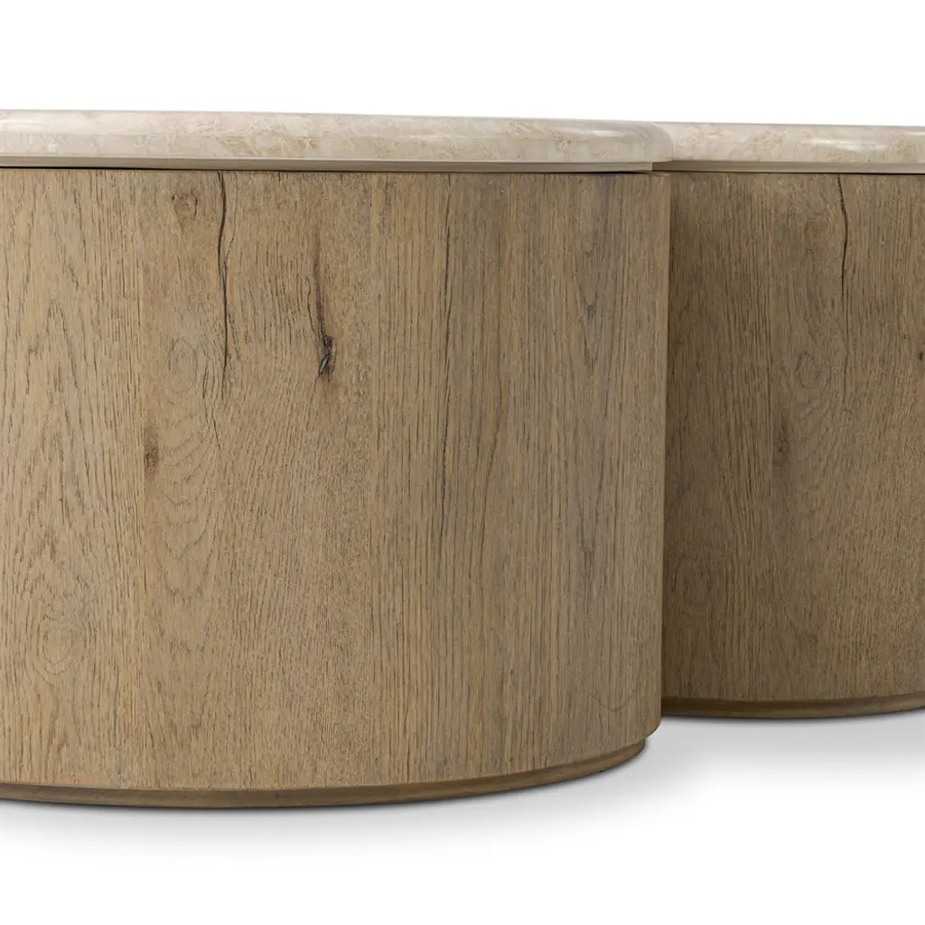 Jaxton Modern Classic Beige Marble Brown Oak Nesting Coffee Tables