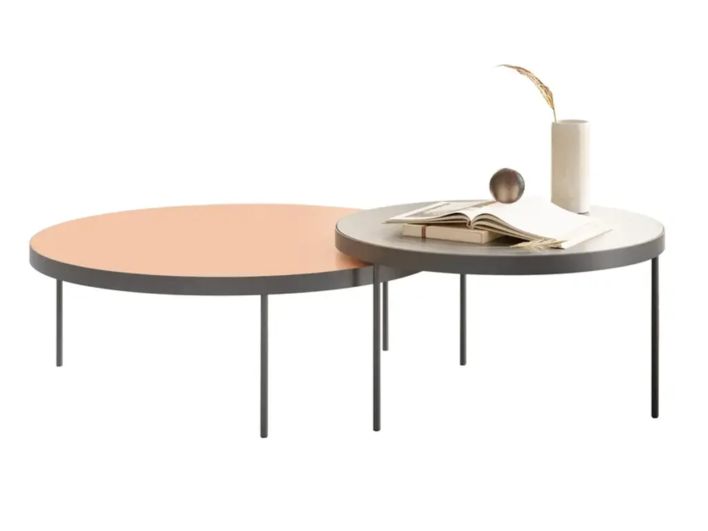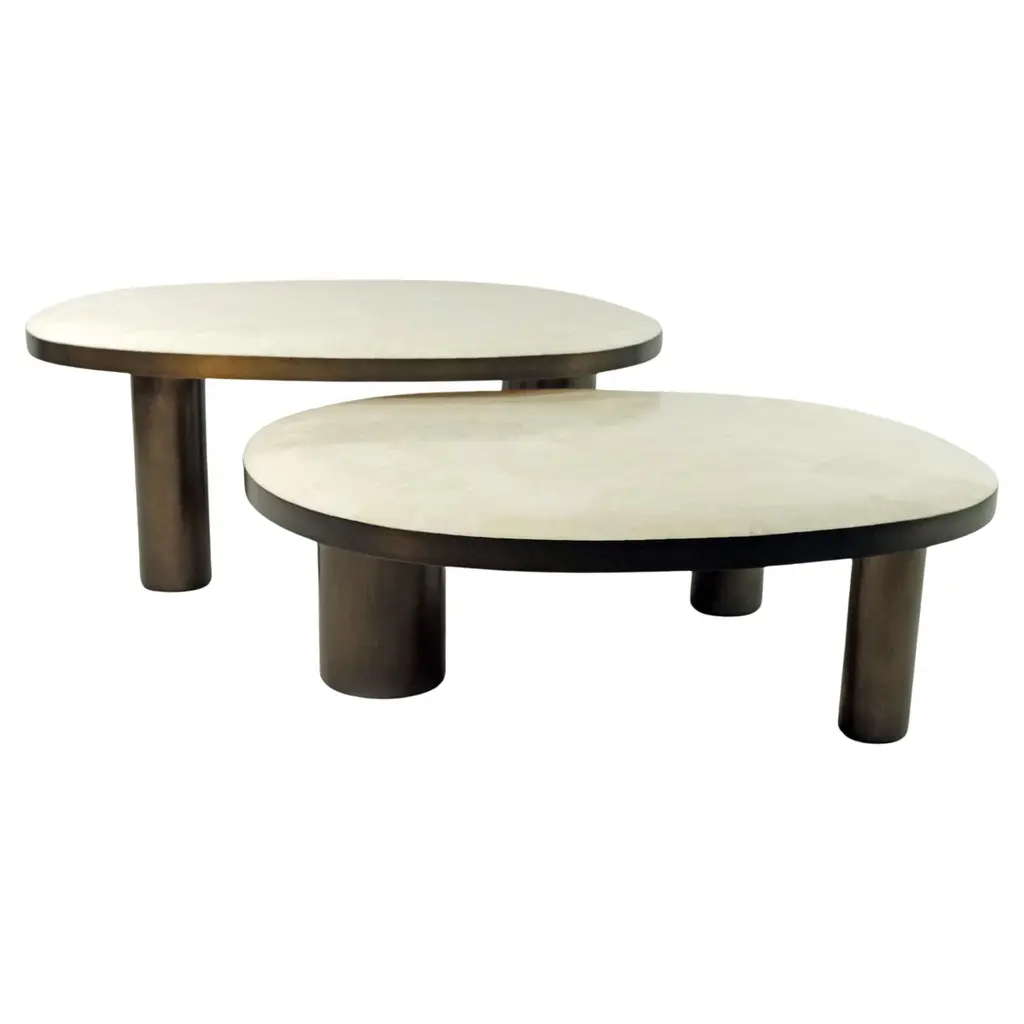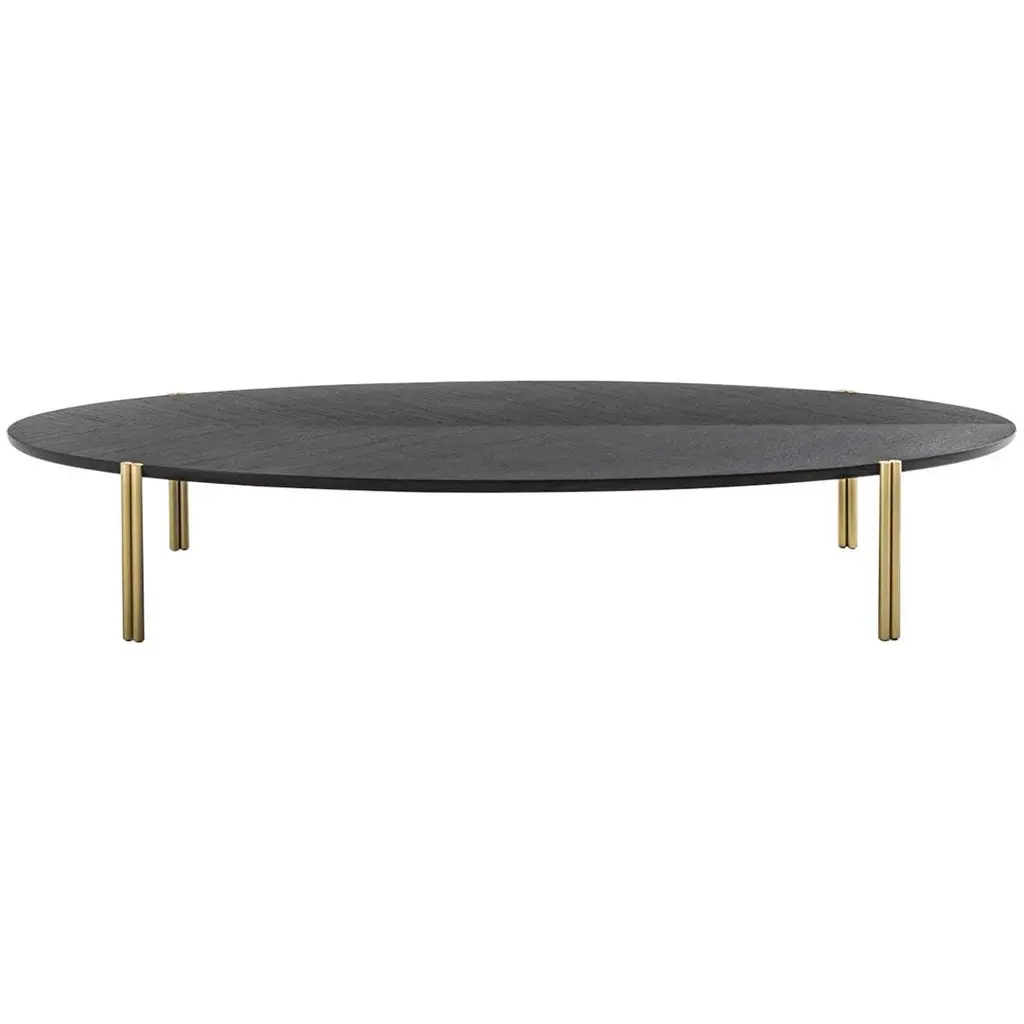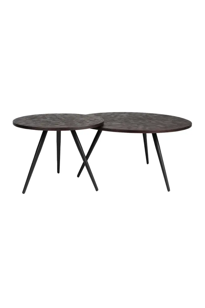 Combining functionality and elegant style, the two Jean Ordinary nesting tables will add a touch of class to your living area or lounge room. Practical in design, they can be placed separately where needed or easily kept together when not in use. The tables are crafted in Canaletto walnut and black ash with legs in brass/iron in a gunmetal finish.