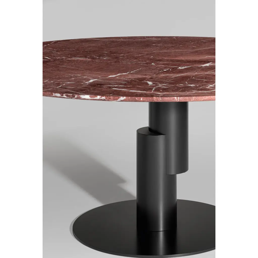 The base of the Innesti modern nesting table, designed by Paolo Grasselli for Bonaldo, appears detached from the upper part of the accessory, as though the top were suspended in the air. The two parts are united by a perfect, yet unexpected joint that puts this table in the spotlight with a great sculptural effect. This element becomes the standout feature of the living area, while dialoguing with the surrounding space thanks to the option of customizing the details with different types of marble, wood and ceramic for the top and different metals for the base.