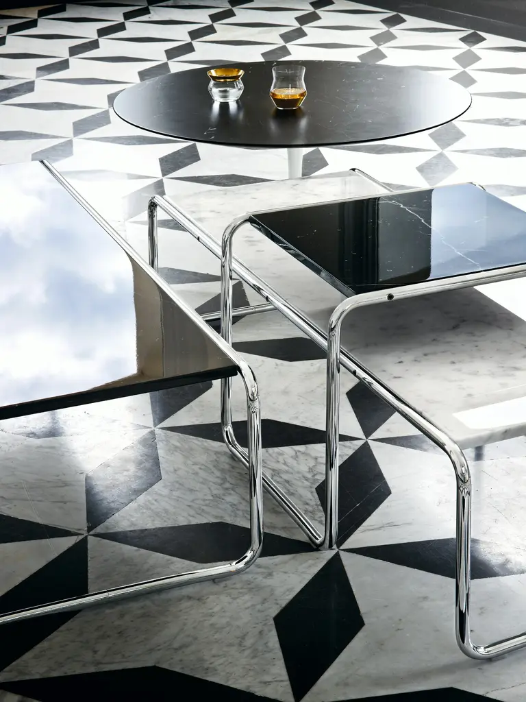 Available in two sizes, the Laccio Table by Marcel Breuer stands as a paradigm of 20th-century design. Breuer’s use of tubular steel—which defines the crisp outline of these nesting tables—revolutionized furniture construction and inspired generations of designers.In 1925, Marcel Breuer was an apprentice at the Bauhaus when he reduced tables and chairs to their elemental lines and forever altered the future of furniture design. He was inspired to work with tubular steel after hearing the material is “bent like macaroni” to make bicycle frames. “I was very much engaged in the transparency of the form,” said Breuer, who, upon recognizing the potential of this lightweight, sturdy, malleable material, knew he could create the furniture he envisioned.