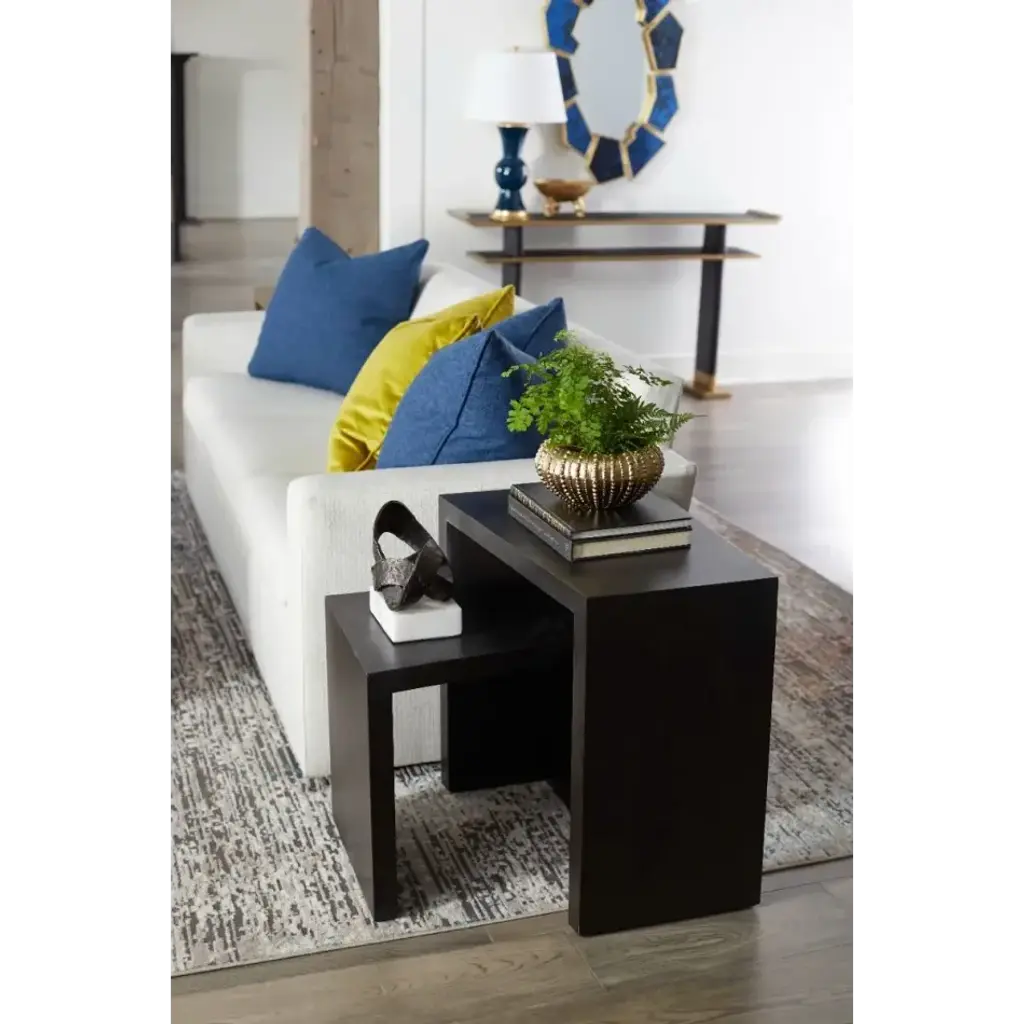 The Lucy Nesting Tables offer a modern twist on traditional nesting tables. Their angled shapes add visual interest and maximize versatility. Crafted using gorgeous oak veneers, these tables boast parallelogram tops which are canted along one edge to give them a contemporary asymmetry. Perfect for creating a sophisticated, layered, and inviting living room.