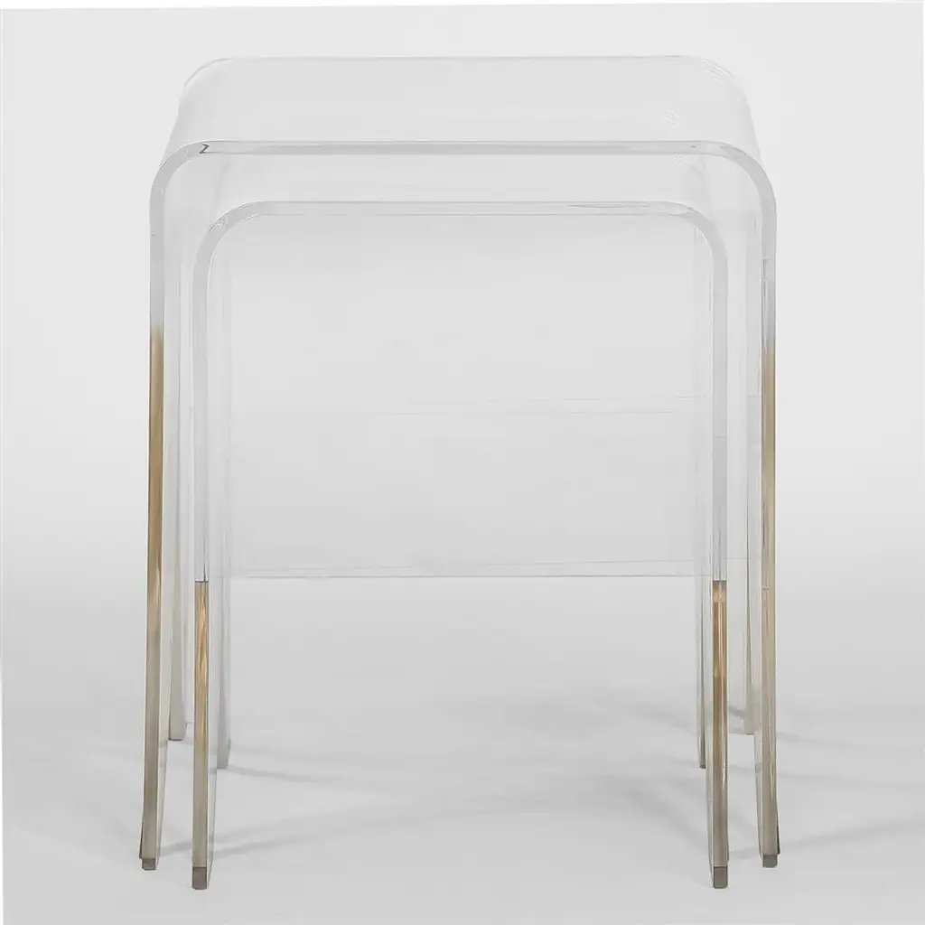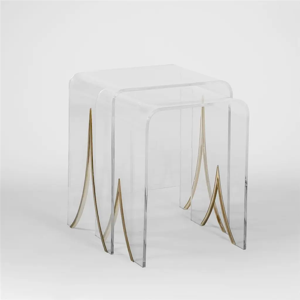 Magnolia Modern Lucite Waterfall Brass Nesting Table - Pair