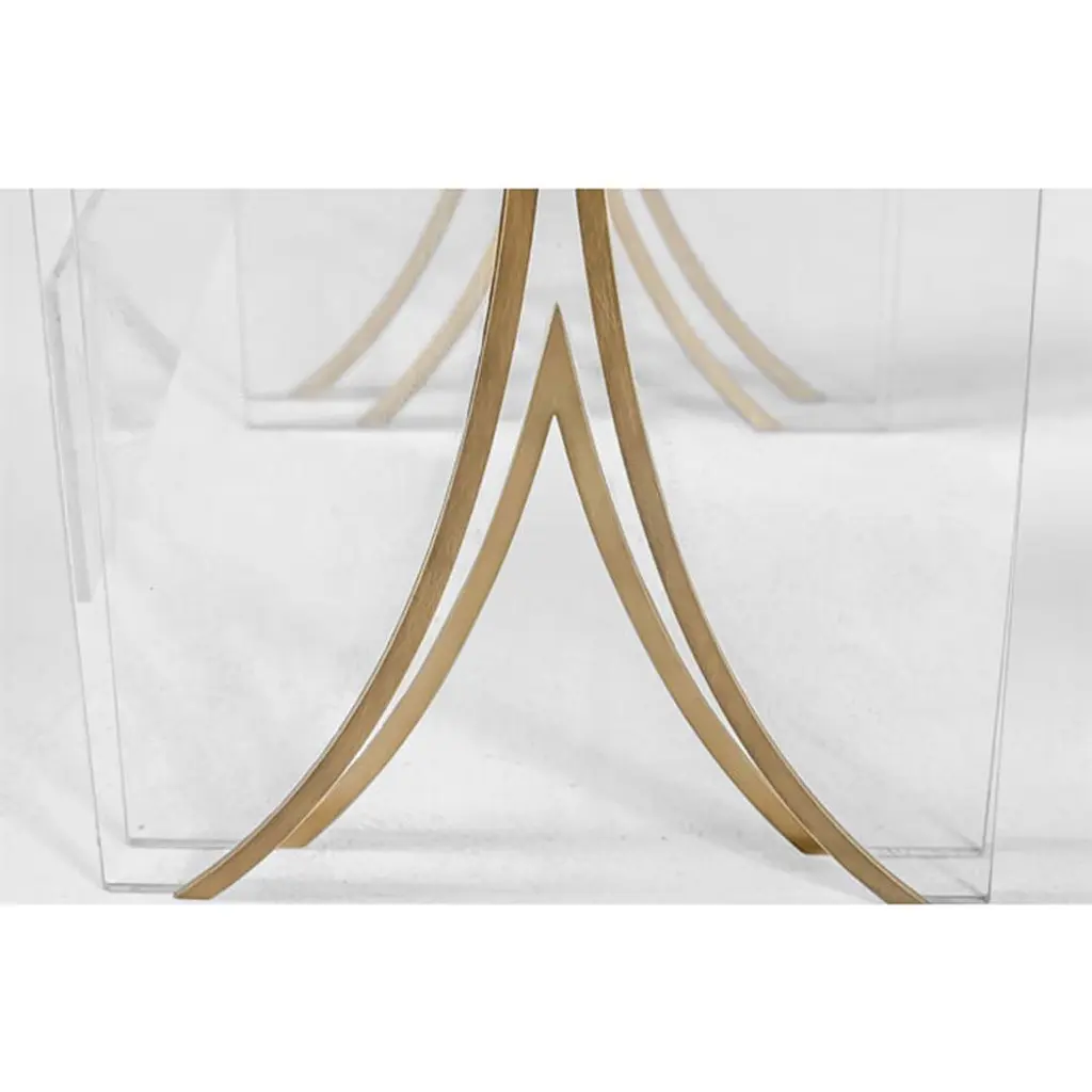 The classic contemporary waterfall table gets a bit of flash. A graceful golden edge adds glamour to the simplistic acrylic forms. In vintage or modern settings, these gilded additions bring modern charm. Sold as a set of 2.