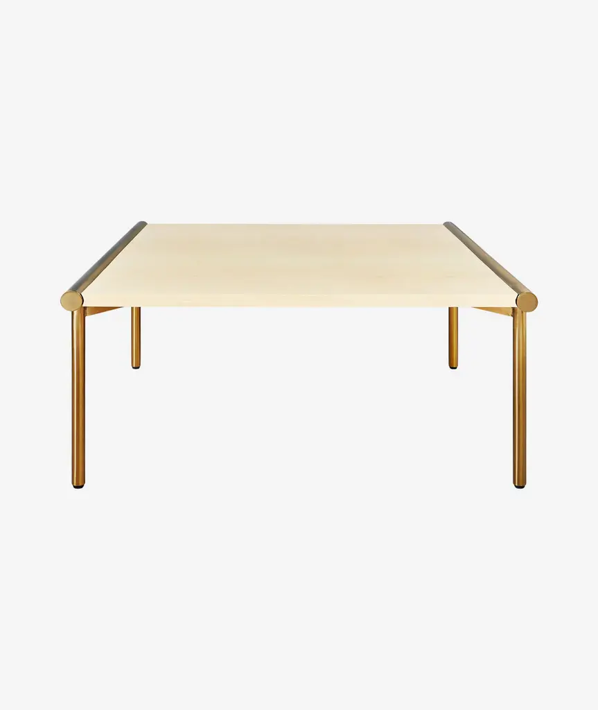 Bauhaus-inspired design gets a contemporary update with the Manifold collection. Featuring elegant, clean-lined tables that can stand alone or nest together, the well-considered silhouettes optimize space with innovative design compatibility. The square coffee table serves as an ideal companion for sectionals or a grouping of armchairs, bringing people together for meaningful interaction. While the tabletop provides ample space to spread out, the slender metal legs contribute to an overall light, sleek aesthetic. Available in two combinations—Blonde Ash with Brass or Walnut with Pewter – each with the promise to elevate your space.