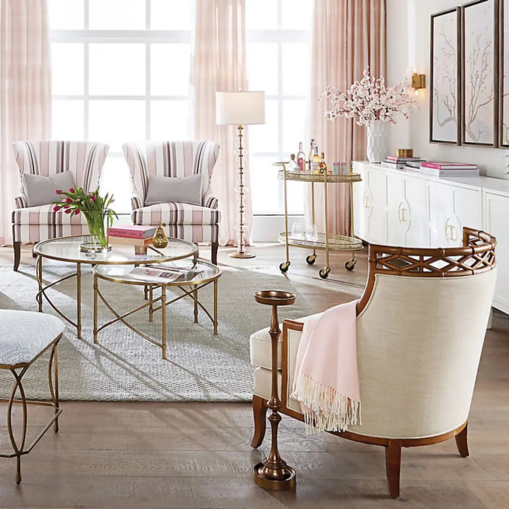 Beautiful versatility in every curve. Our Maxwell coffee table set is designed to stack, stagger or stand alone to suit your seating and serving needs. Graceful "X" details can be turned in any direction to change your look. Maxwell Nesting Coffee Table features:
